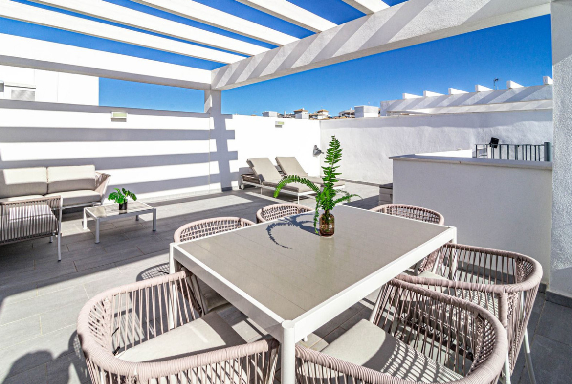 The penthouse enjoys pleasant views over the surroundings, giving it a bright and open feel. Estepona itself is known for its authentic Andalusian charm, with flower-lined pedestrian streets, reduced traffic in the center, and an inviting promenade along the beach that encourages walking and outdoor living. It’s a family-friendly town with several playgrounds close to the sea and an Old Town that has been beautifully restored.