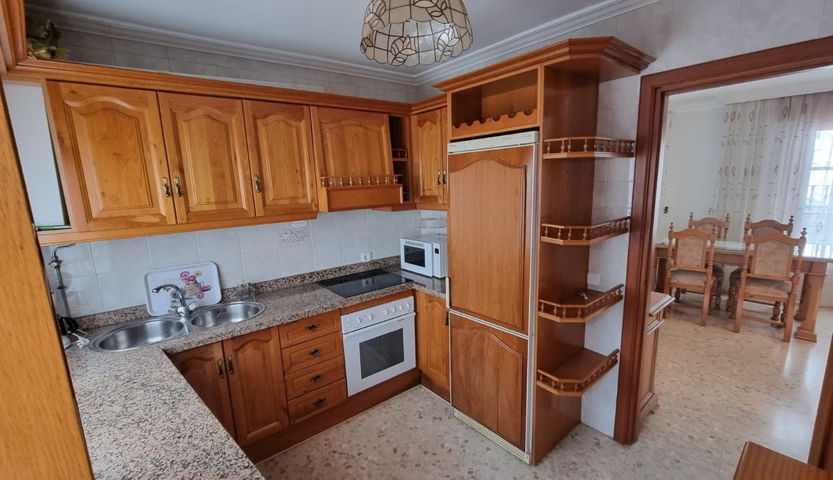This apartment consists of an entrance hall, a living-dining room with a balcony overlooking the town and the street where it is located. There are 2 good-sized bedrooms, a full bathroom, a kitchen, and best of all… upstairs there is a 30 m2 solarium with wonderful views of the sea, Africa, and Gibraltar.