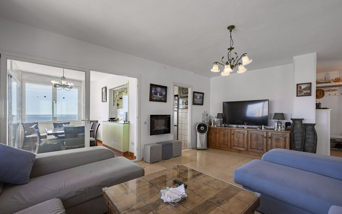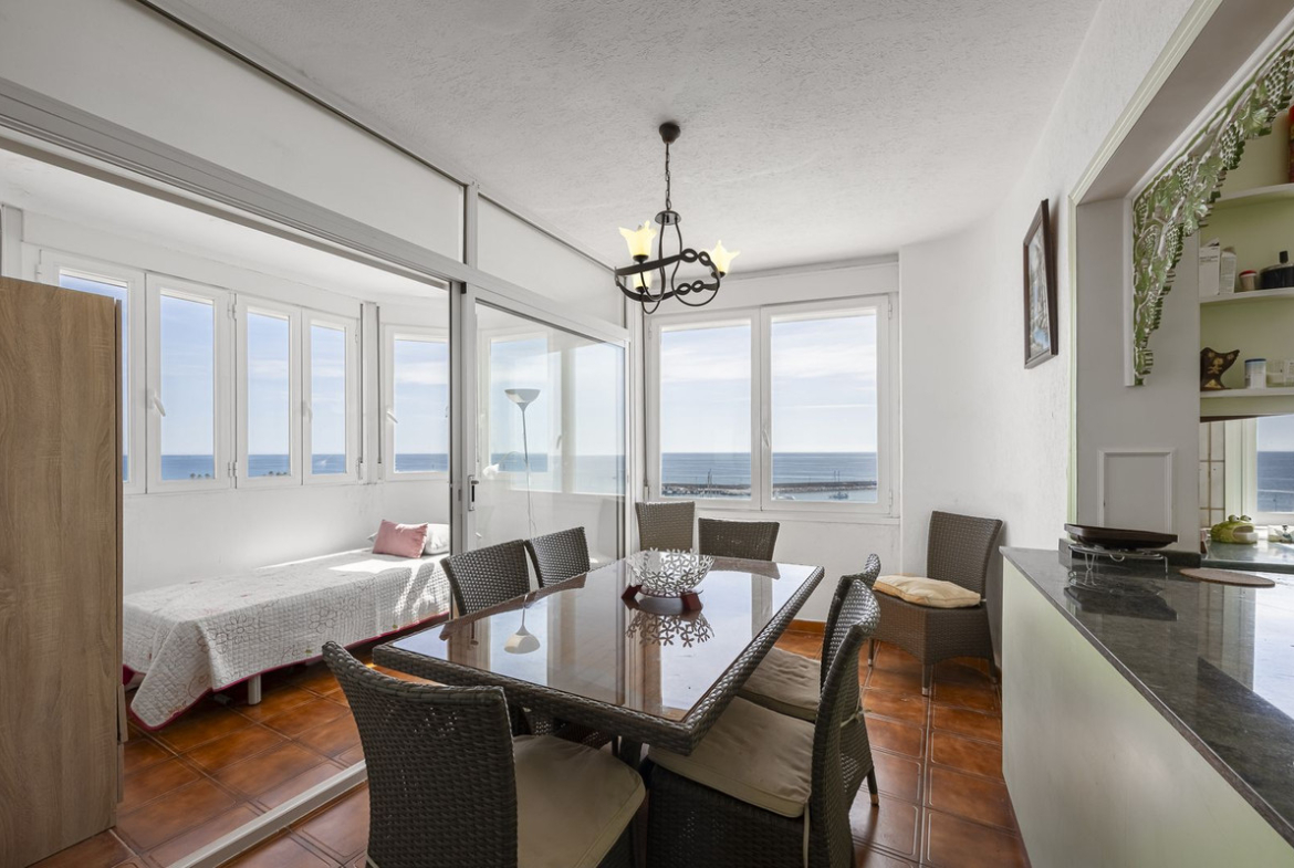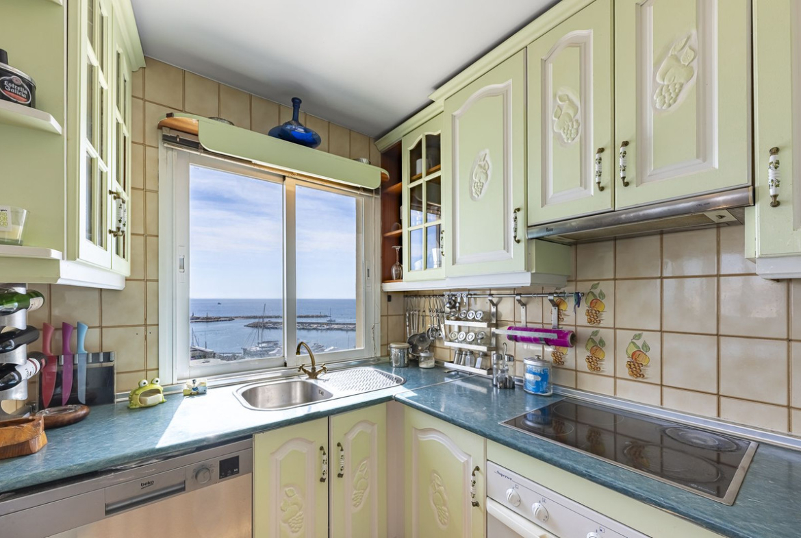 Where the Mediterranean becomes a way of life.Facing the infinite horizon, this residence redefines the art of living by the sea.It is not just a privileged location, but an aesthetic and emotional experience where light, space and silence interact in absolute harmony.Each room has been designed to frame the landscape: two bedrooms and two bathrooms that combine elegance and functionality, with a master suite that invites you to wake up surrounded by the sound of the sea. The bathrooms, spacious and sophisticated, evoke the well-being of a private spa.The spacious, open-plan living room connects effortlessly to a private terrace where time seems to stand still. There, having breakfast in front of the waves or sharing a drink at sunset becomes a daily ritual of beauty and calm.The separate, contemporary-style kitchen offers an almost cinematic view of the sea. Cooking here is not a chore, but an act of inspiration.The interior is bathed in natural light from dawn to dusk. The large windows create a perfect continuity between the interior and exterior, making the Mediterranean not just a view, but a constant presence.Located in an exclusive residential complex, the property offers tropical gardens, a swimming pool, 24-hour security and direct access to the marina, a privilege reserved for the few, where luxury meets nautical life and the vibrant atmosphere of the seafront promenade.More than a view