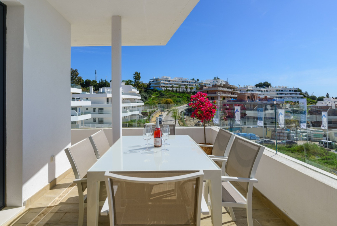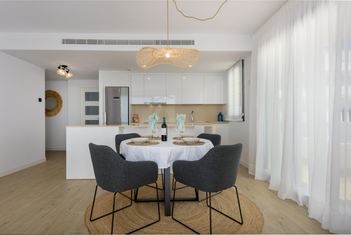 This magnificent corner ground floor apartment, with 2 bedrooms and 2 bathrooms, is located within a modern and avant-garde complex recently completed (2024), consisting of small buildings of only two floors. Its elevated position provides a privileged orientation, allowing you to fully enjoy spectacular Mediterranean views.