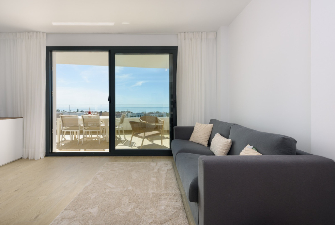 The apartment enjoys a prime location: a Mercadona and an Aldi supermarket are literally three meters from the residence, while the beach is just a few minutes’ walk via a pedestrian walkway crossing the road. Estepona’s historic center is also easily accessible by bike or on foot via the beautiful seafront promenade, or just 5 minutes by car.