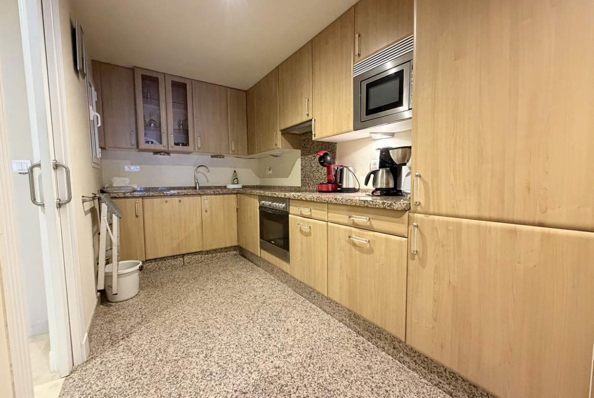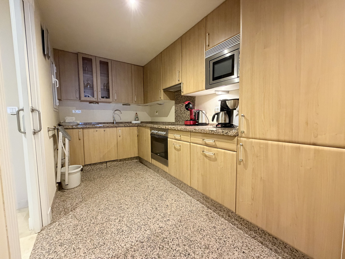 The property features a bright living-dining area opening onto an exceptional 100 m² private terrace, perfect for outdoor living by the sea. It offers two bedrooms and two bathrooms, presented in good condition with a comfortable and practical layout.
