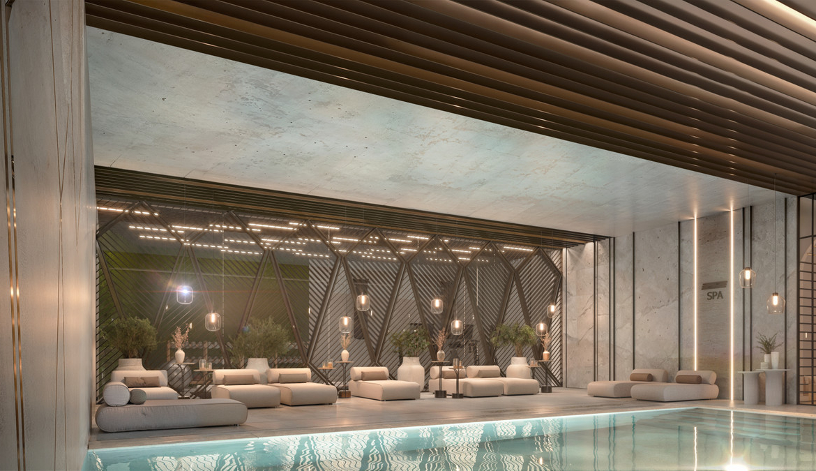 Residents enjoy an exclusive range of high-quality amenities within the complex, including a communal swimming pool and beautifully landscaped gardens. There is also a fully equipped gym and a spa with sauna. In addition, the building offers a lounge, social club, and coworking space.