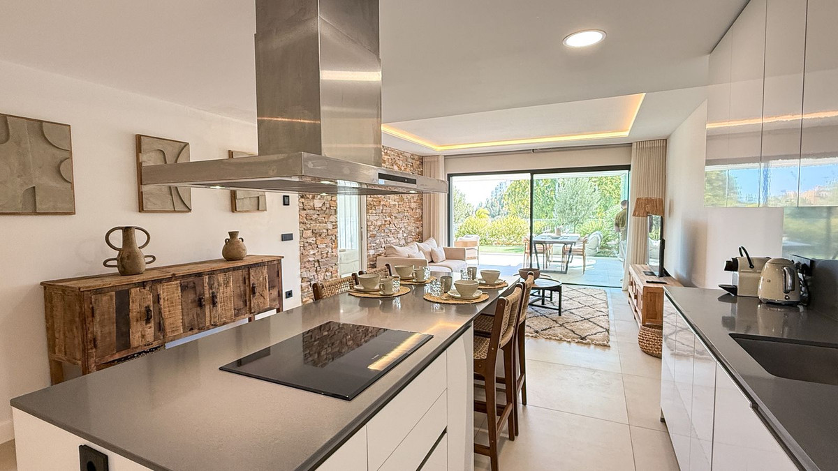 But more than that, it is the ideal place for outdoor living as there is also an oversized covered terrace that has been recently upgraded with glass curtains for maximum use of the terrace all year round and a very nice mediterranean garden with very low maintenance. The terrace has water and electricity pre-installation for an outdoor kitchen. The garden has sprinkler installation for automatic watering of the plants as wel as pre-installation for a jacuzzi.