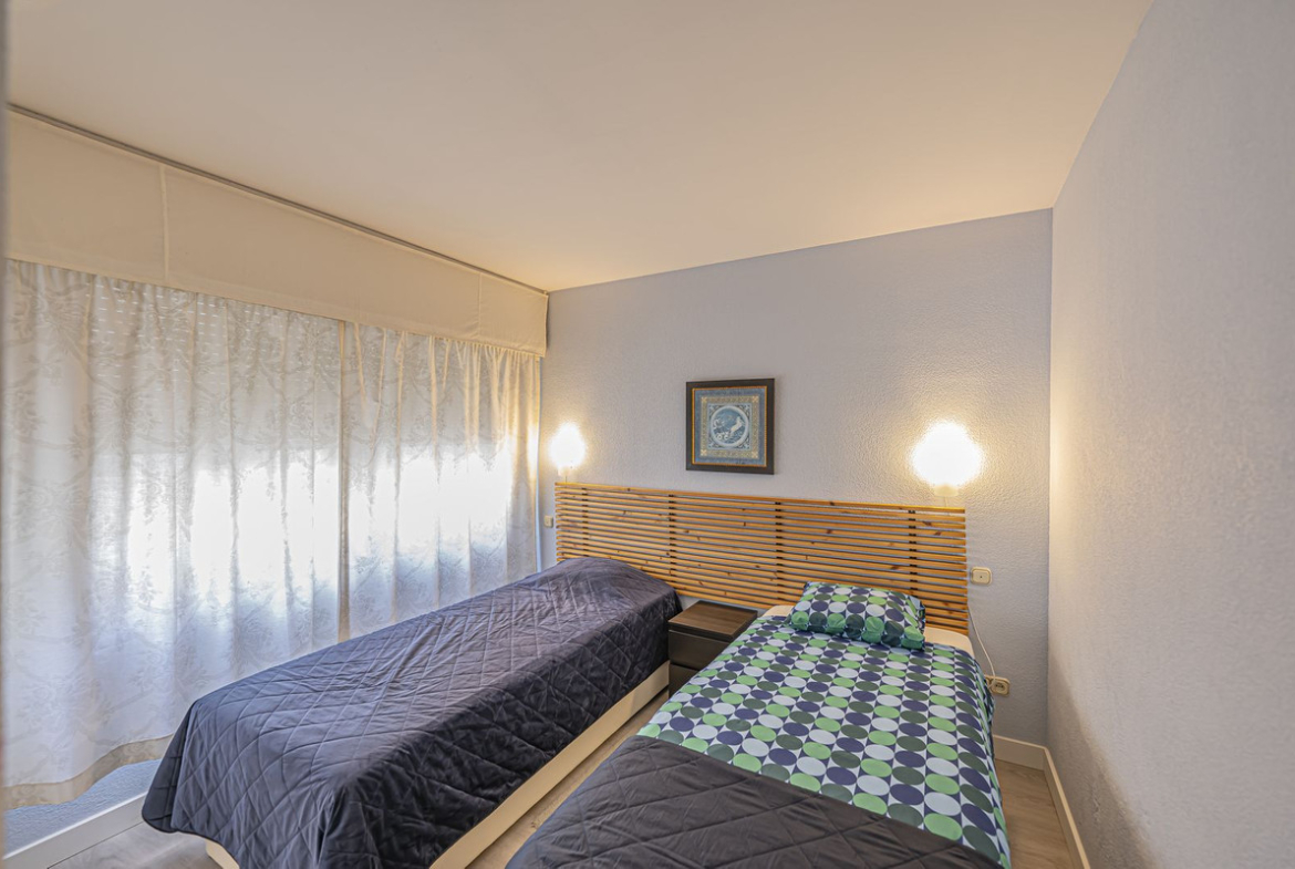 Located in a building with a communal swimming pool and paddle tennis court.