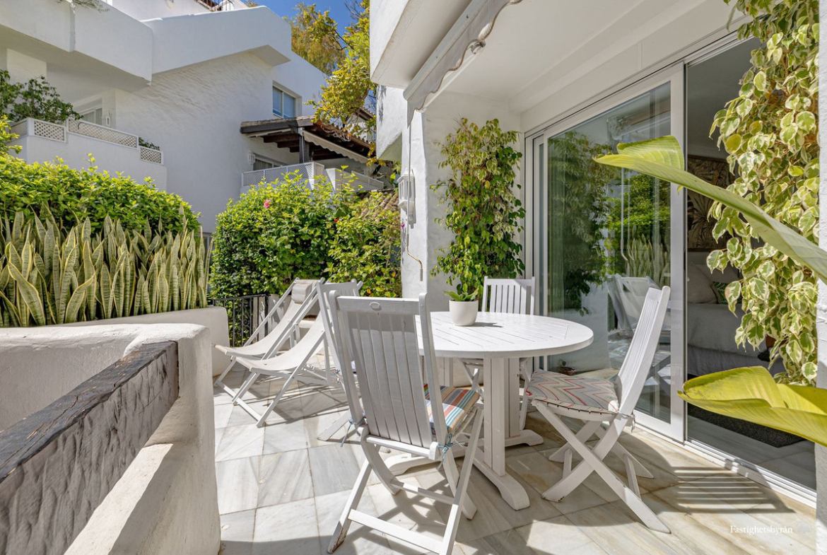 Alcazaba Beach magnificent apartment with large terrace, garden, swimming pool and partial views to the Mediterranean, in exclusive beachfront urbanization, with direct access to the beach, beach bar and restaurant on site, communal parking, 24 hour security, beautiful tropical gardens very well kept, 6 swimming pools (one heated), tennis and paddle courts. It is located on the outskirts of Estepona, with all kinds of services around and only 5 minutes drive from the marina and 10 minutes from Puerto Banus.