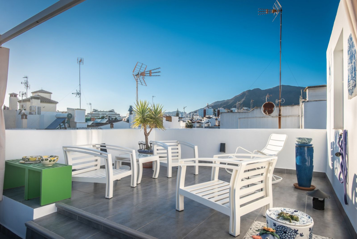 NEWLY RENOVATED TOP FLOOR APARTMENT IN THE HEART OF THE OLD TOWN OF ESTEPONA WITH A LARGE ROOF TERRACE