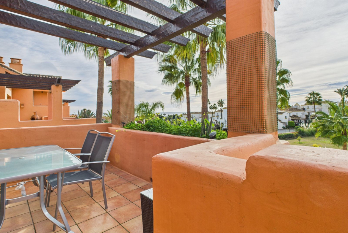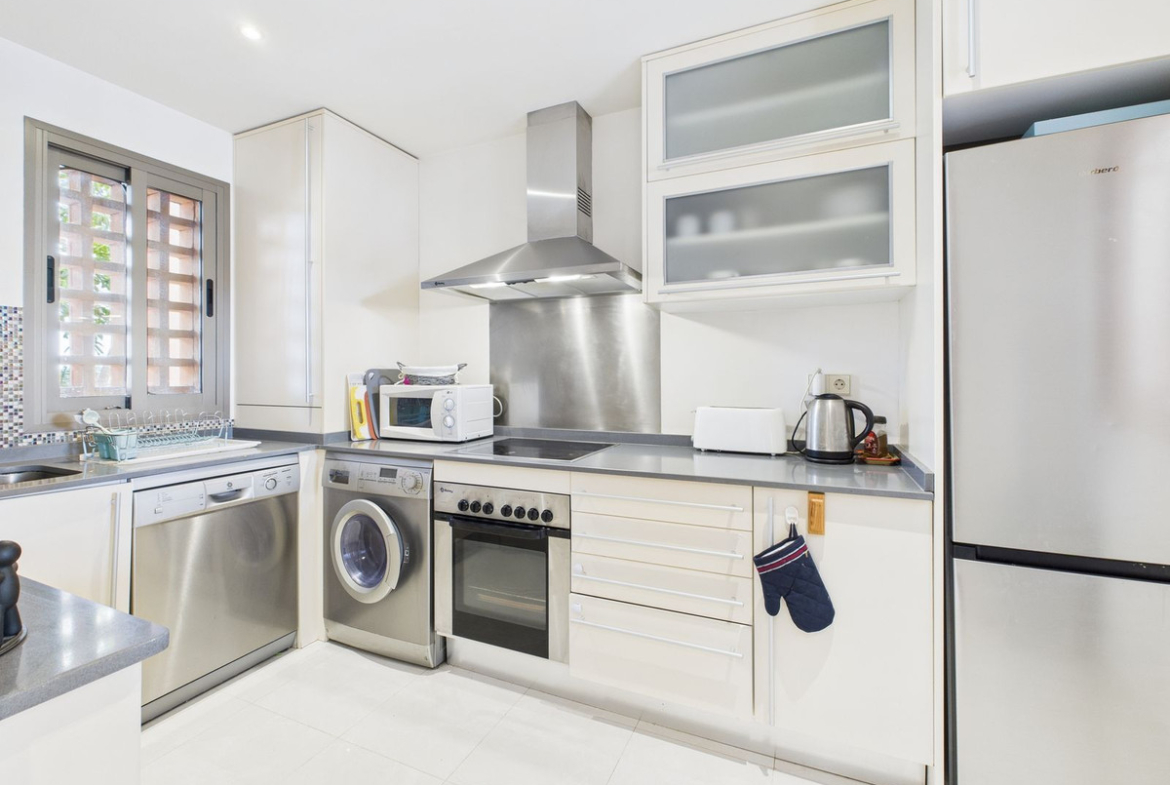 The property includes an underground parking space with a large private storage unit, as well as ample guest parking. A bus stop at the end of the road provides convenient connections to Estepona and Puerto Banús.