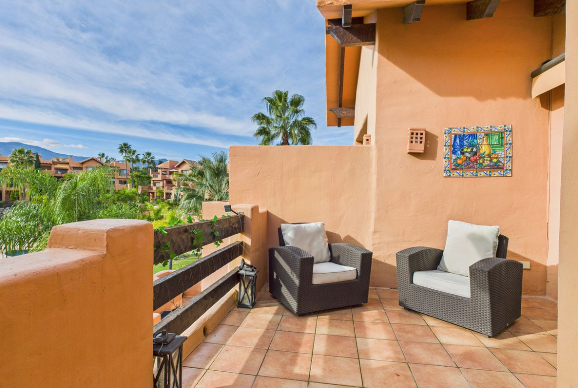 Beautifully maintained, bright and airy 2-bedroom, 2-bathroom apartment located within a secure gated community with 24-hour security. The apartment is south–south-west facing, enjoying all-day sunshine and offering panoramic sea and mountain views.