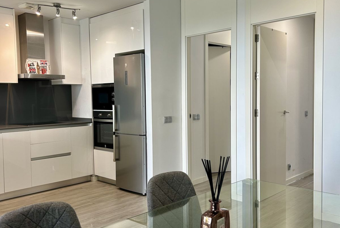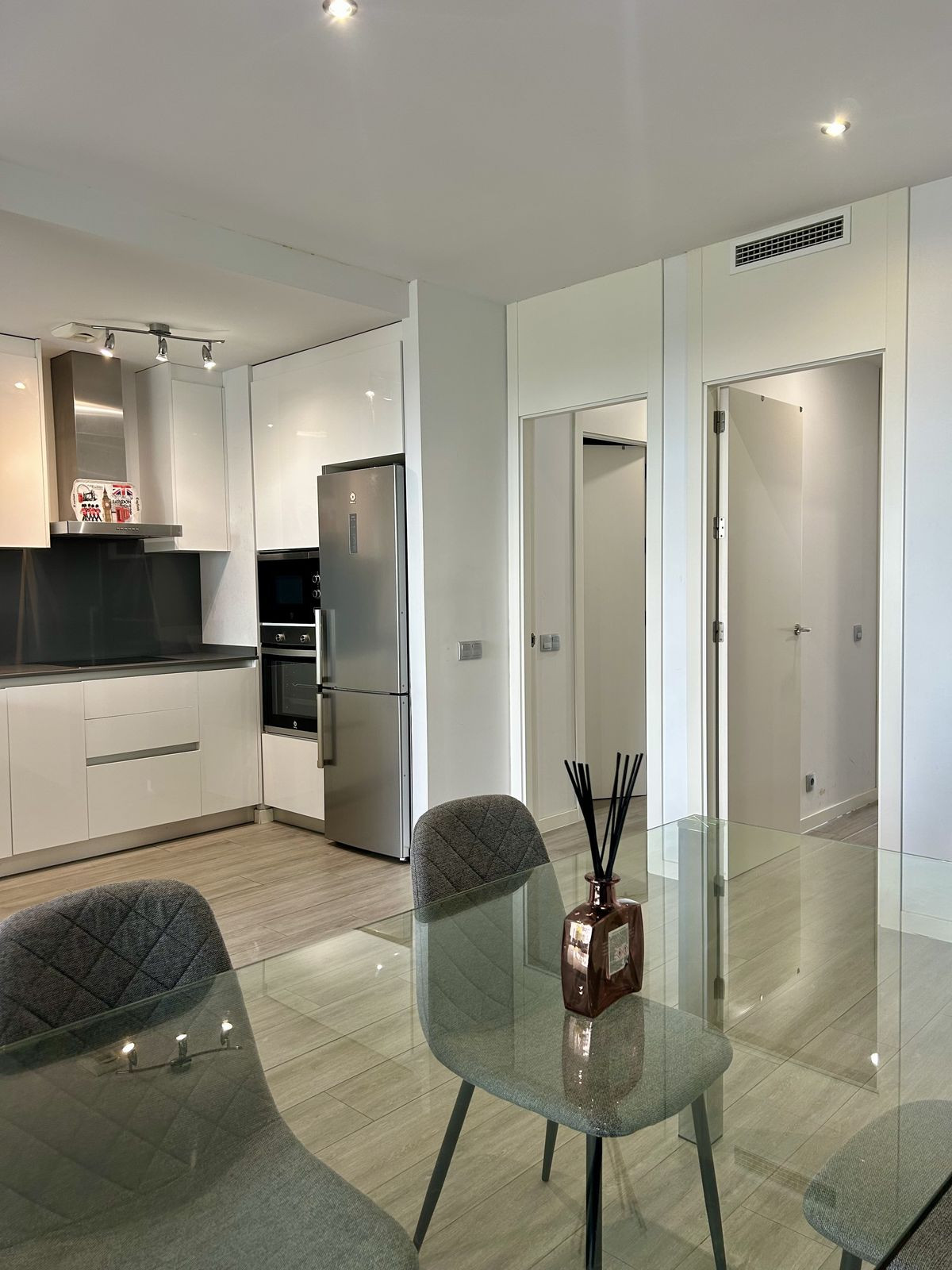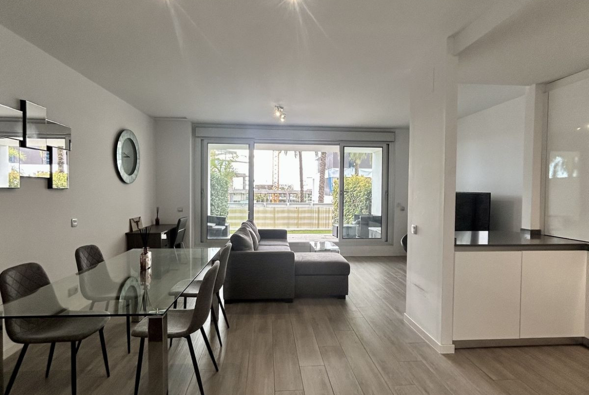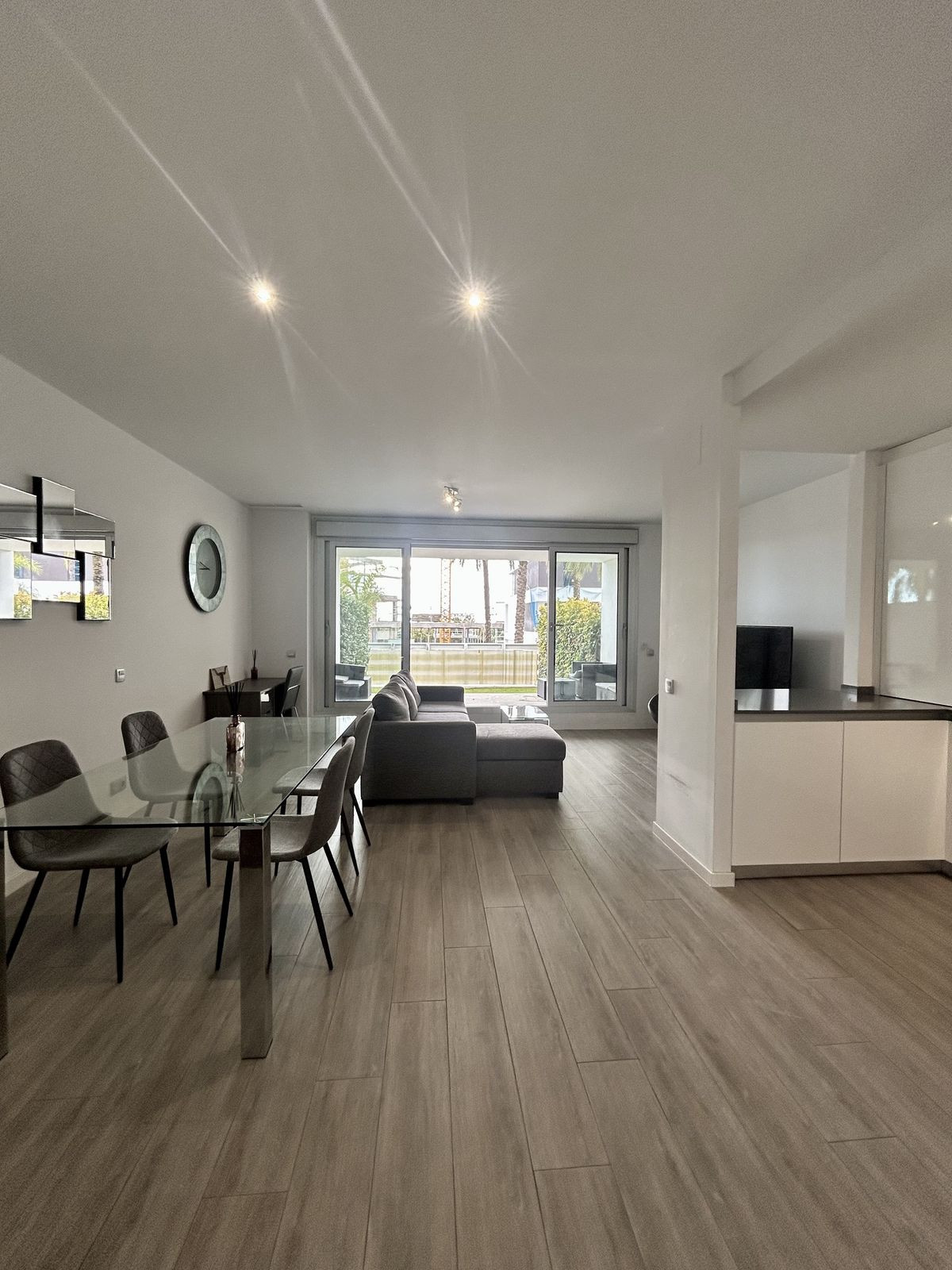 Modern apartment located in the charming village of Cancelada in Estepona. The garden apartment consists of a bright lounge and dining area have access to a private wouth facing terrace of 18 sqm and a garden of 30 sqm. The open plan kitchen is fully equipped with top range appliances. The 2 bedrooms have en-suite bathrooms and fitted wardrobes. The complex is gated with security services and concierge and has 2 swimming pools, kids pool and play area. Few minutes walking to shops, restaurants and services and only 5 minutes by car to the beach and Los Flamingos golf course.
