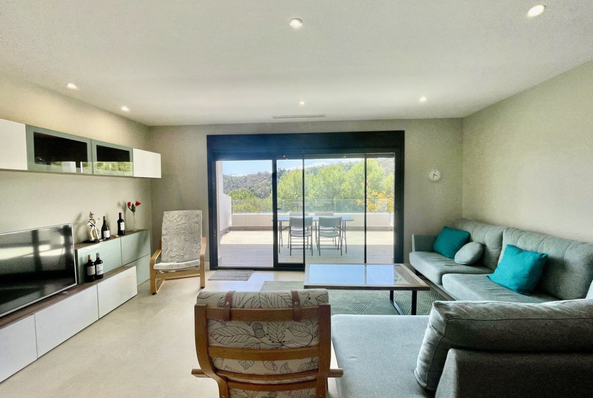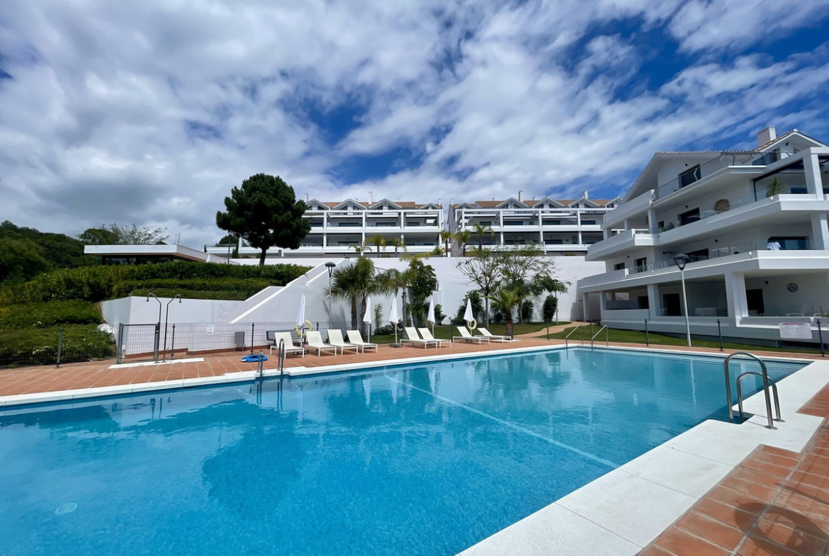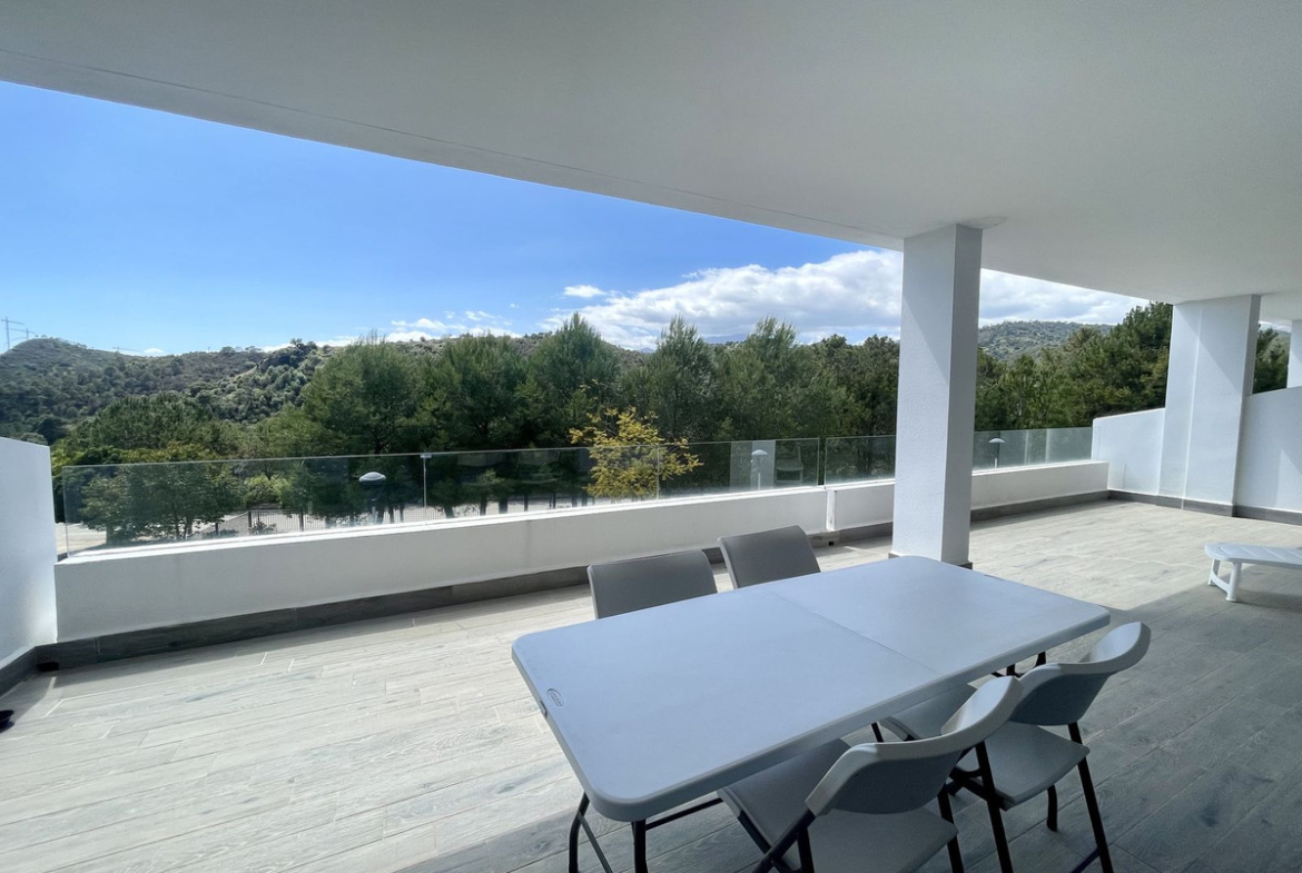 This stylish two-bedroom, two-bathroom apartment is located on the first floor of the sought-after Ocean Hills complex in Selwo, Estepona. Completed in 2017, the property offers a generous 94 m² built area, with 80 m² of usable interior space, complemented by an impressive 51 m² terrace.
