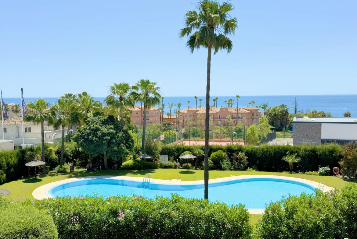 Located on the first floor, this magnificent property offers privacy, comfort, and an unbeatable natural setting. Just 200 meters from exceptional beaches, it is set within a beautifully maintained residential complex featuring lush tropical gardens and a large year-round swimming pool. Ideally situated between the ports of Estepona and La Duquesa—both just a 5-minute drive away—where you'll find a wide variety of shops, restaurants, entertainment options, and prestigious golf courses.