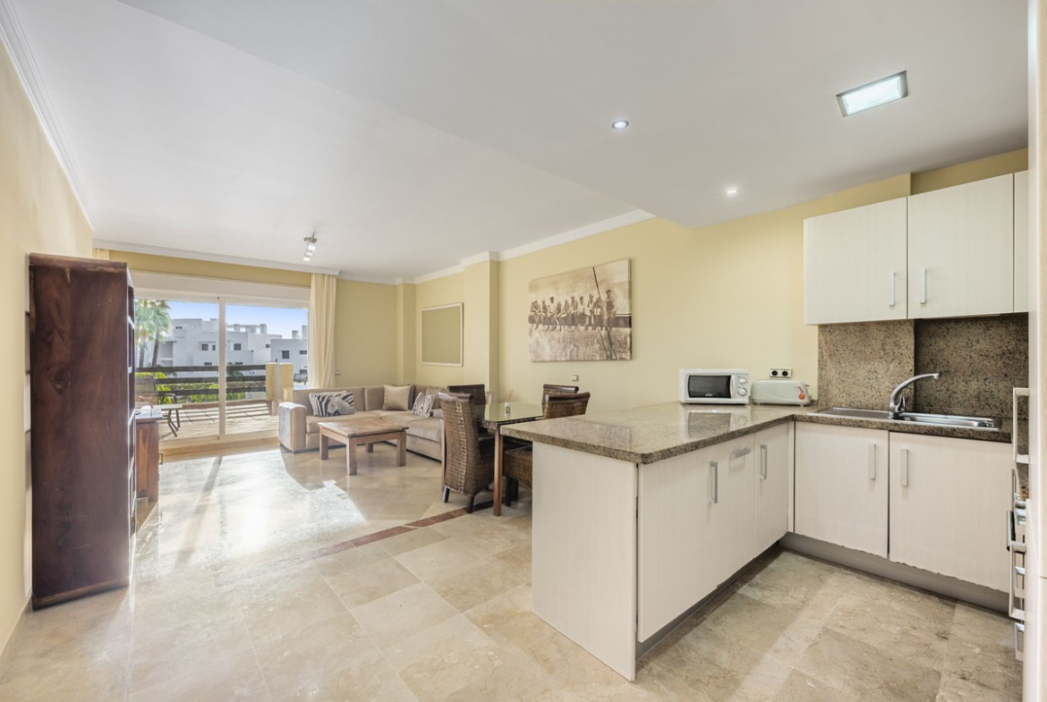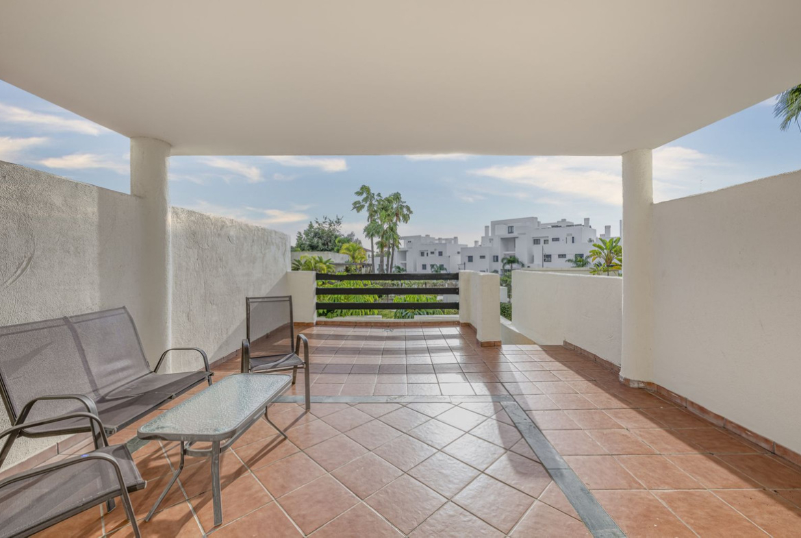 Situated just 10 minutes from San Pedro de Alcántara and 20 minutes from Marbella, the property is set in a quiet area surrounded by other residential developments and villas. The terrace offers views over the urbanization and its gardens.