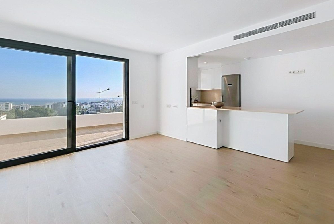Discover a newly built 2-bedroom apartment in Estepona, designed for modern coastal living and located just a short walk from the beach. This stylish first-floor home combines generous interior dimensions with a 27 m² terrace offering open sea views, making it an ideal property for those seeking a contemporary residence on the Costa del Sol with excellent outdoor space.