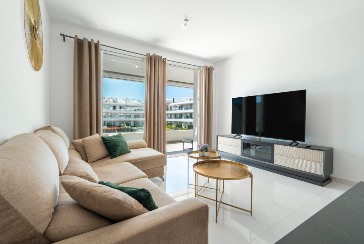 This bright and spacious 2-bedroom, 2-bathroom apartment is located in the sought-after area of Bel-Air, right in the heart of the New Golden Mile. The master bedroom features an en-suite bathroom with direct access to a generous 21m² terrace overlooking the beautifully maintained communal pool — ideal for enjoying the Mediterranean lifestyle.