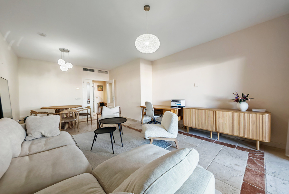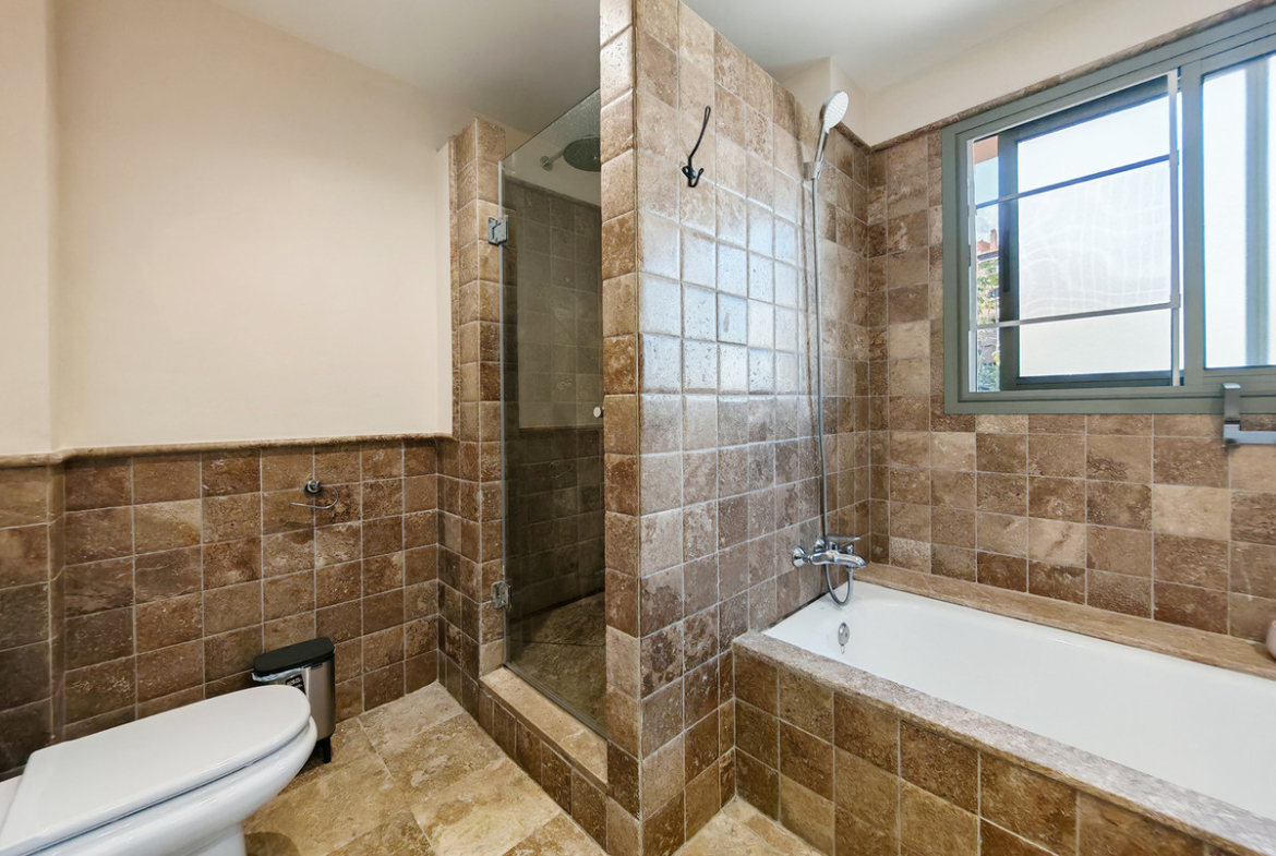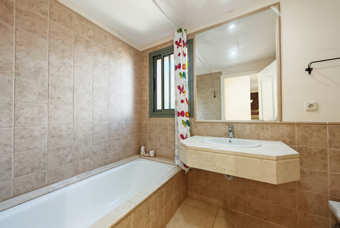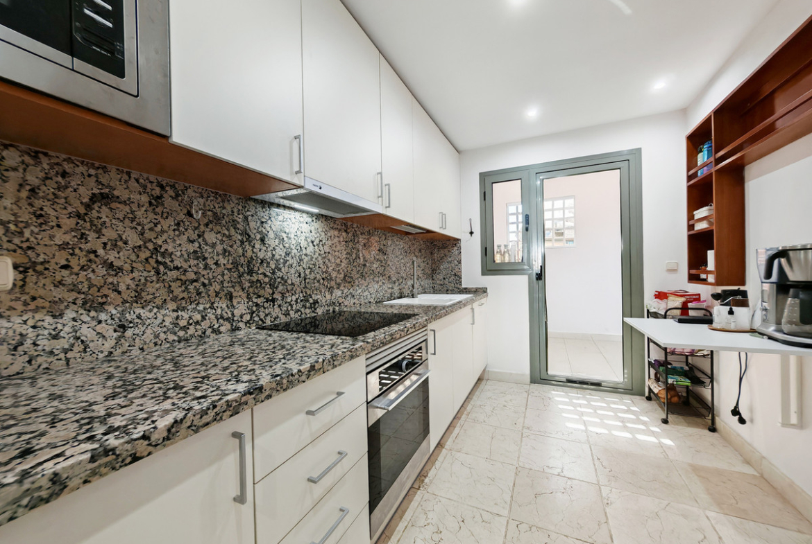 Ground Floor Apartment for sale in Benatalaya, Estepona with 2 bedrooms and 2 bathrooms, with communal swimming pool, private garage (2 parking spaces) and private garden. Regarding property dimensions, it has 112 m² built and 66 m² plot. Has the following facilities air conditioning, fully fitted kitchen, utility room, marble floors, sauna, gym, security entrance, security service 24h, private terrace, kitchen equipped, living room, mountain view, indoor pool, laundry room, internet – wi-fi, 24h service, gated community, lift, garden view, doorman, glass doors, optional furniture, handicap accessible, recently renovated / refurbished, close to shops, close to town, close to schools, surveillance cameras and pets allowed.
