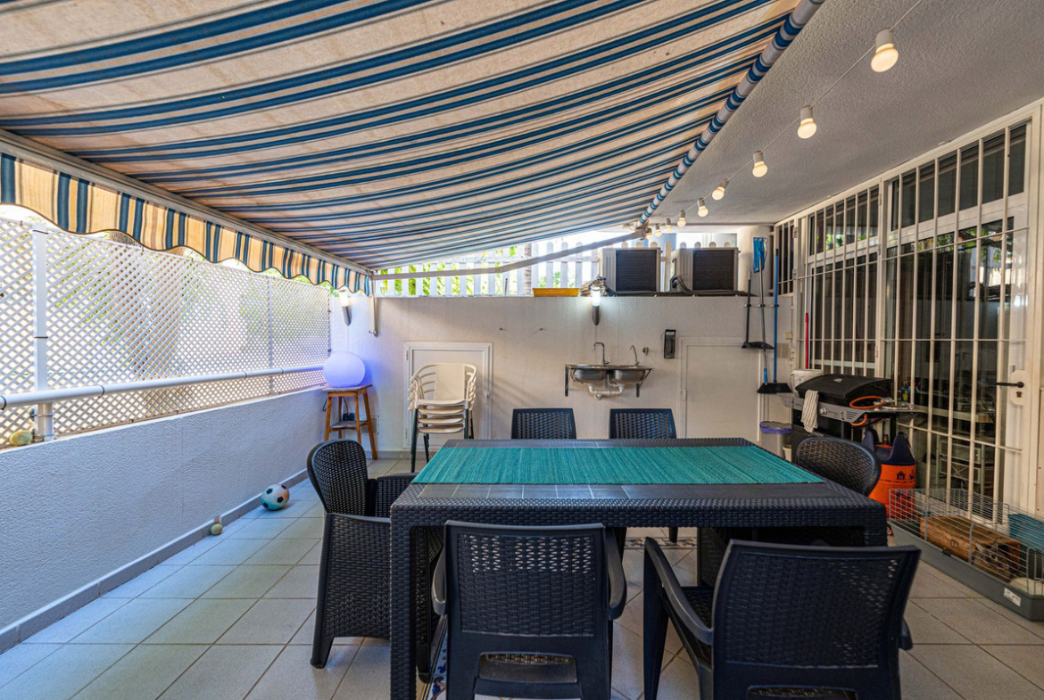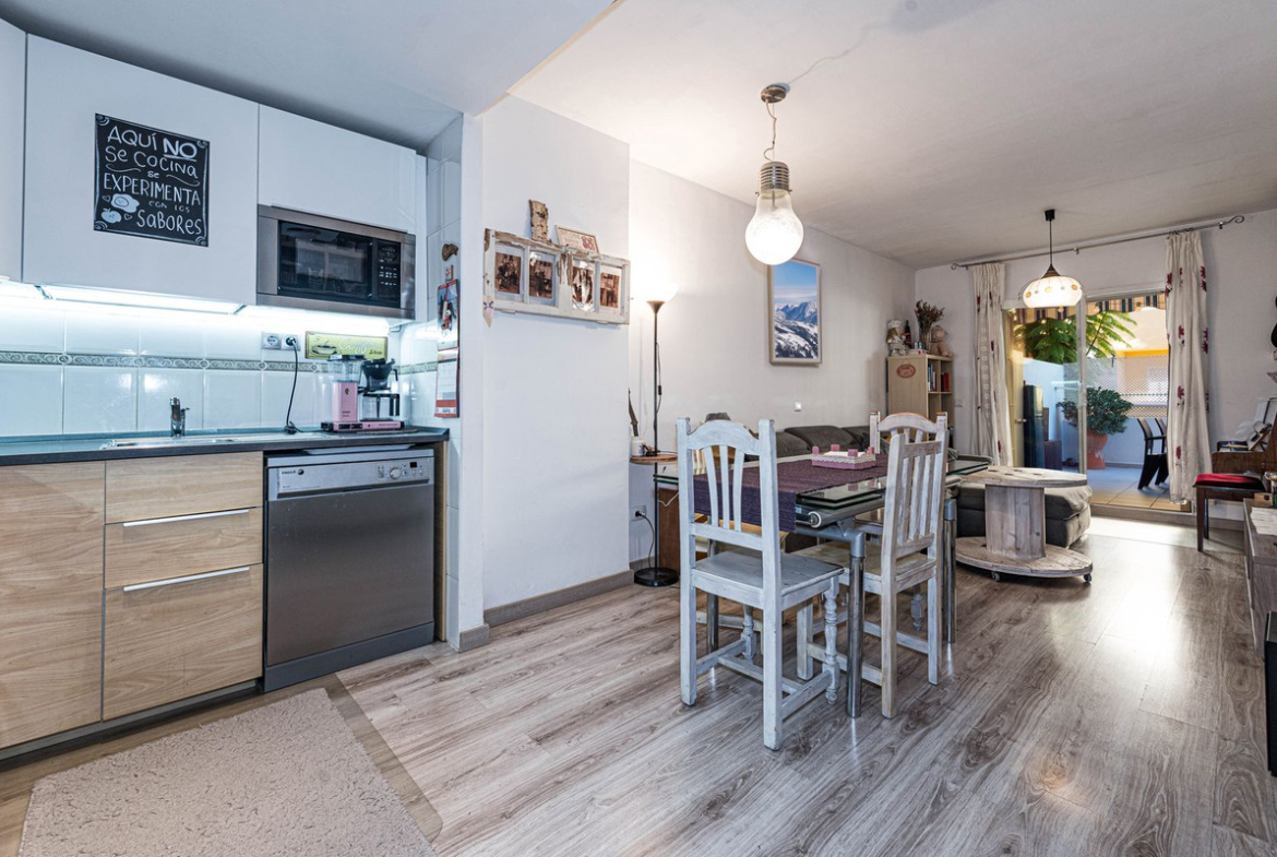 The apartment features a full bathroom and an additional guest toilet, ensuring everyday comfort. The opened kitchen flows into a bright and spacious living room, with direct access to a large private patio, perfect for relaxing outdoors.