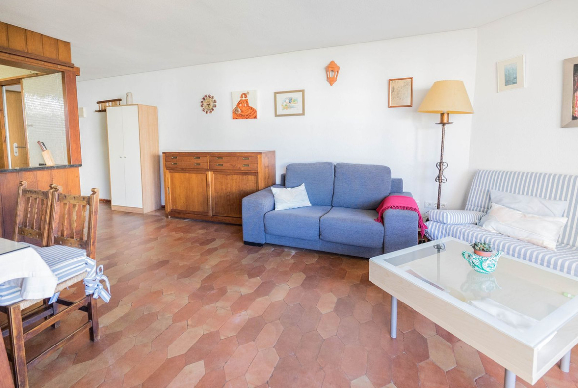 ✨ Spacious and bright living room with access to a pleasant terrace overlooking the gardens and pool