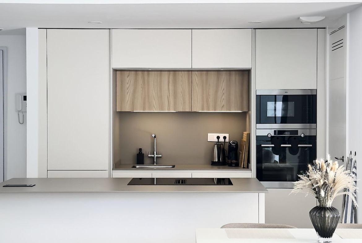 -Fully equipped contemporary kitchen with high-end appliances and sleek finishes