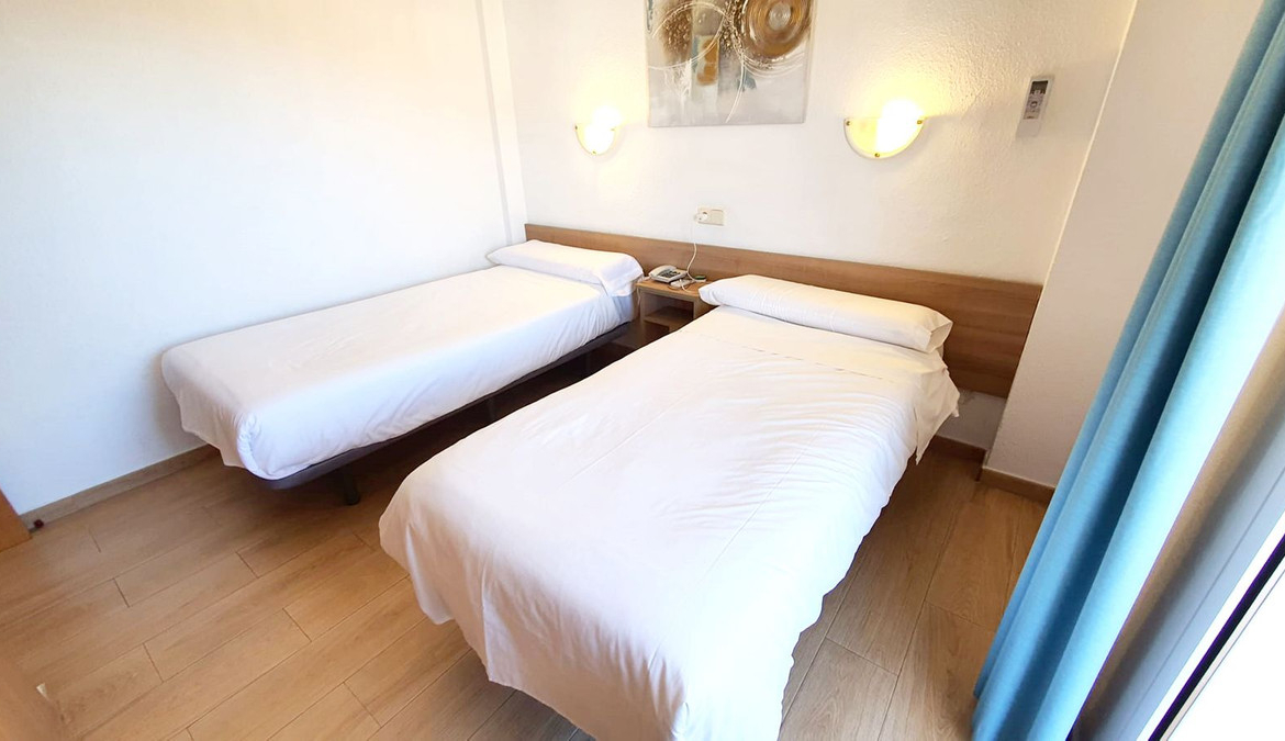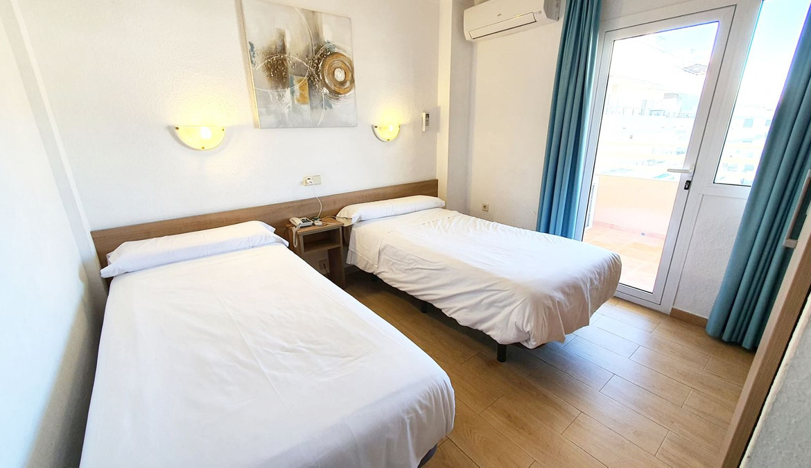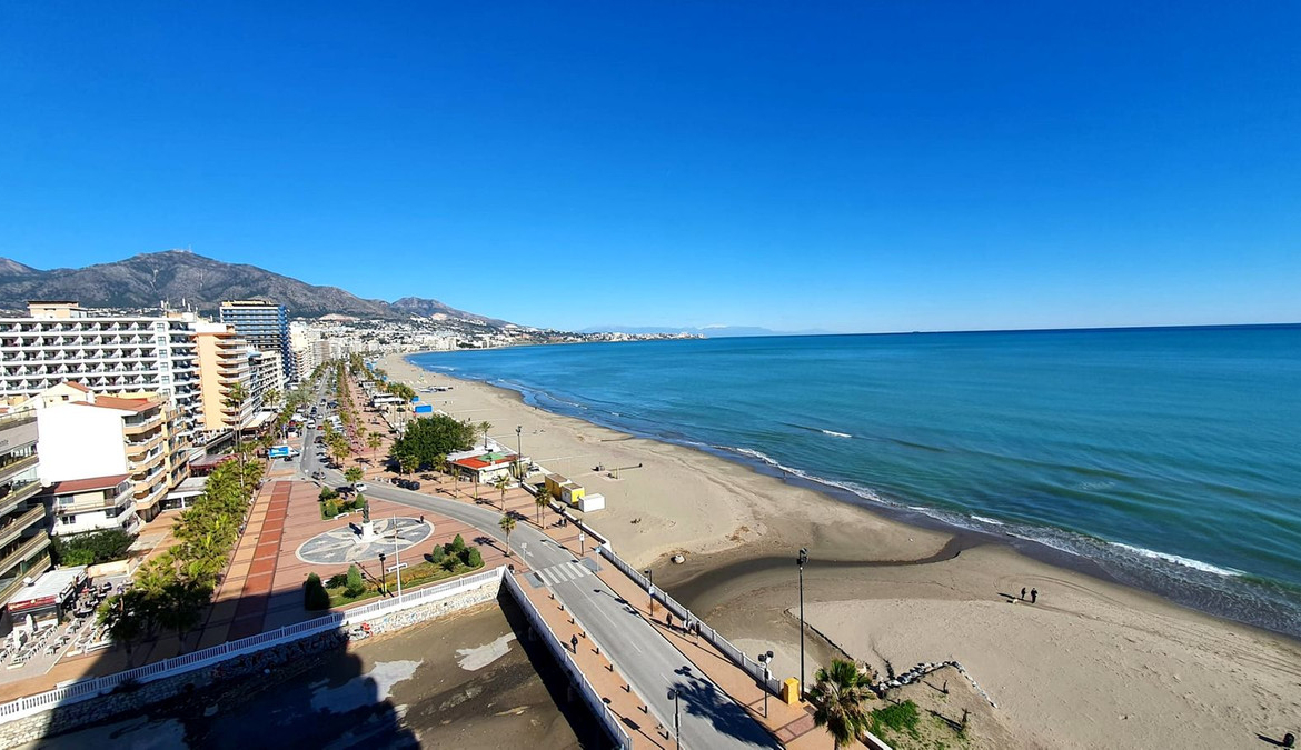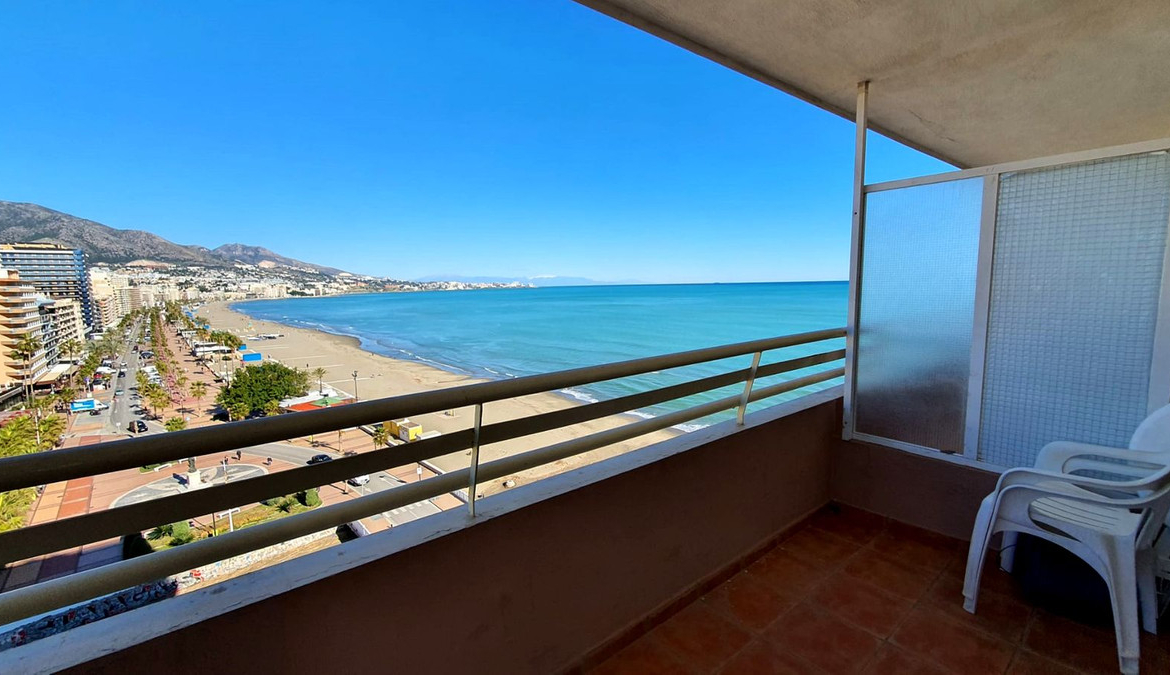 Lovely 2 bedroom apartment front line beach with a large wrap around terrace. This property offers a double bedroom and smaller one, fully equipped kitchen, bathroom and lounge dining with terrace, boasting stunning sea and mountain views. It isset in a building with lift, 24h reception, restaurant,and pool opened all year. Excellent location close to all amenities and transport. Stays furnished as seen.