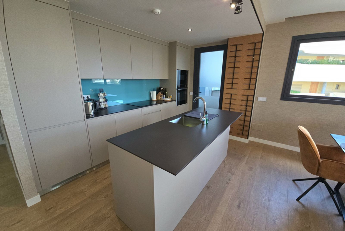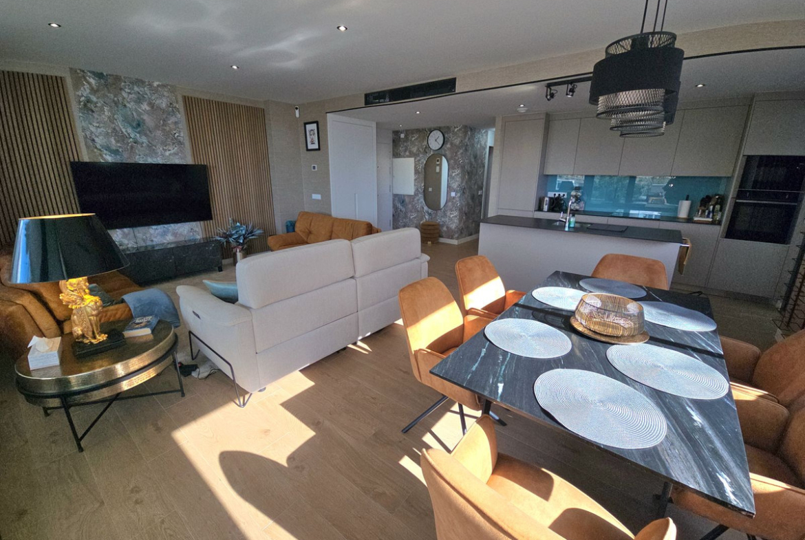 The open-plan kitchen and living area create a warm and inviting environment, ideal for everyday living as well as entertaining guests. The apartment is in excellent condition, featuring modern materials and high-quality finishes throughout.