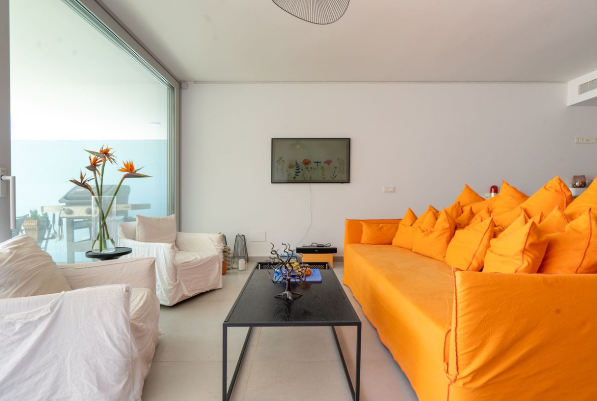 From both the living area and terrace, the apartment enjoys beautiful sea views.