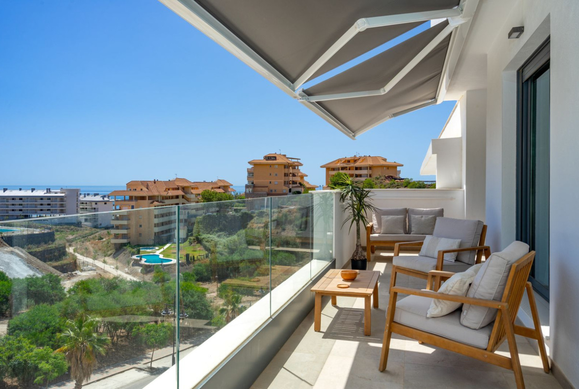Stylish south-east facing two-bedroom apartment with sea views and walking distance to the beach a Carvajal train station!