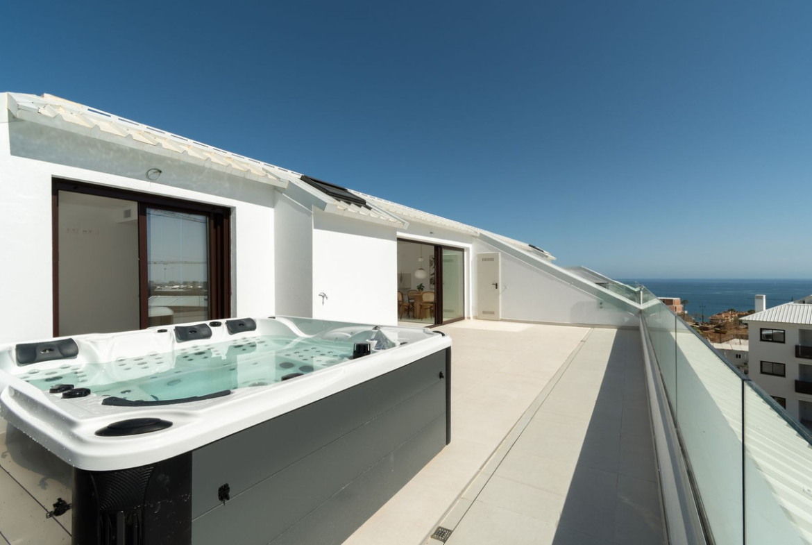 Easy walk, only 500m, to the El Higuerón Sport Club & Spa & Hotel since this penthouse is situated on the same height with the hotel. Hotel has a lot of wellness amenities, like pilates, yoga, padel, award winning spa, Michelin star restaurant and bistro, cafés, etc…