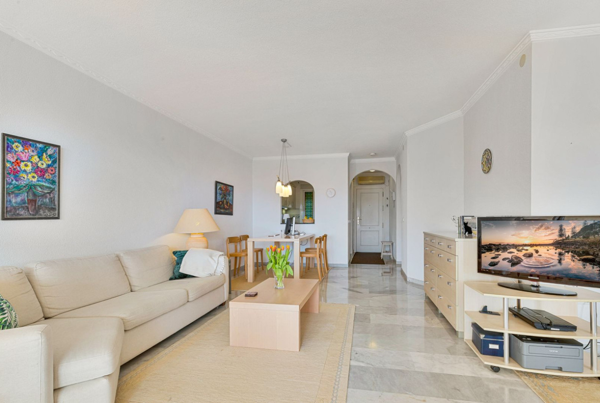 Lovely, excellent quality home with private garden close to all services in Torreblanca. Spacious rooms, a partially open fitted kitchen, a spacious living room and a large terrace with sea views and access to your own private garden. The apartment has two bedrooms, one of which is opened to the living room, it can easily turn to completely separate bedroom by building a wall. The apartment also has spacious bathroom and separate guest toilet. A home in very good condition, which is sold fully furnished and equipped, ready to move into. In addition, the price includes a parking space in a closed parking hall. The community has a very nice swimming pool.