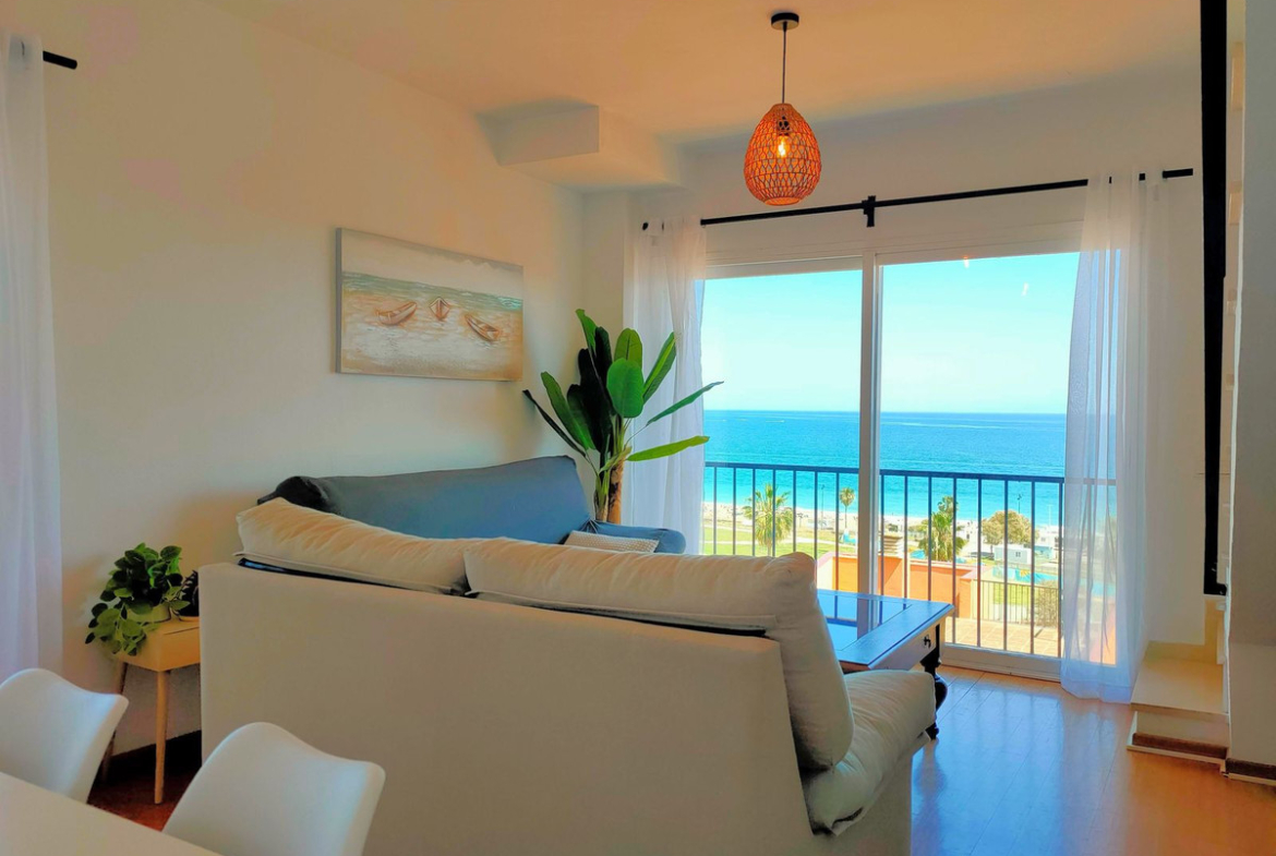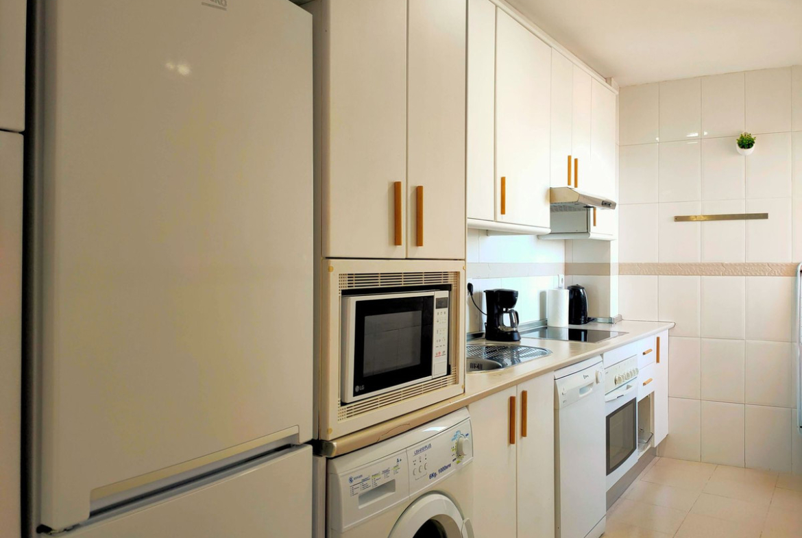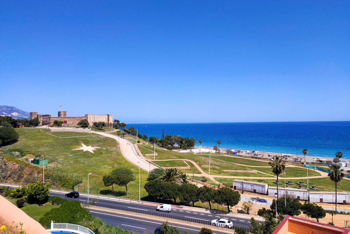 Walk into your living room and look at this! A bright blue sea with an equally blue sky immediately provides the best home or holiday feeling. This bright penthouse offers truly breathtaking views of the sea, the castle, and the bustling city of Fuengirola, which is less than a 10-minute walk away. The beach can be reached across the complex via a pedestrian bridge. From the spacious rooftop terrace, there is a view of the mountains, the city, and the sea. If you prefer to sit outside, next to the living room and kitchen, there is also a sunny terrace here. The penthouse has two bedrooms (1 with en-suite bathroom) and two bathrooms. Stairs lead to the upper floor, which consists entirely of a large rooftop terrace. The complex has underground parking and a large swimming pool where there is always room for a dip after a day of shopping at Myramar (the shopping center which is a 10-minute walk away) or an afternoon at the beach.