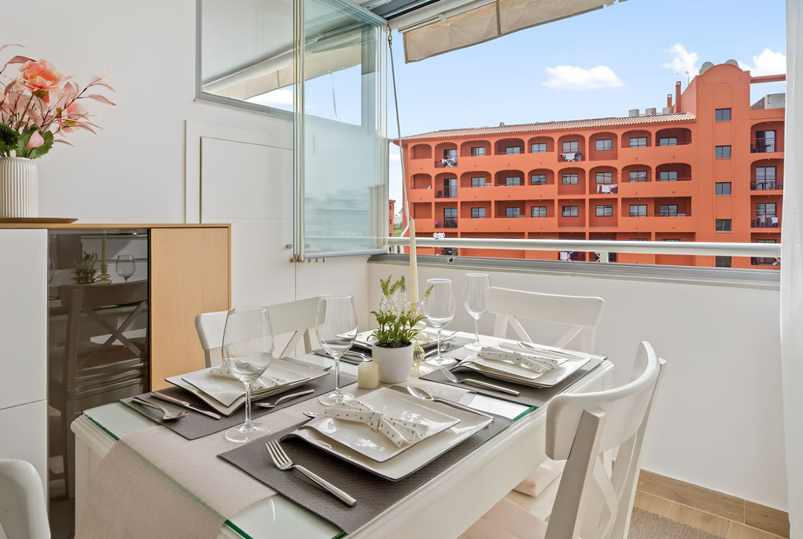 Beautiful apartment in the Miramar area, located in a prestigious and modern gated community with recently built buildings, set in a well-maintained environment. The complex offers two swimming pools, landscaped gardens, a children’s playground, bicycle storage area and electric car charging facilities.