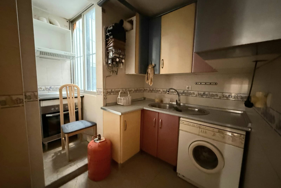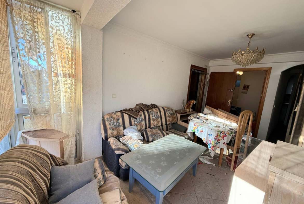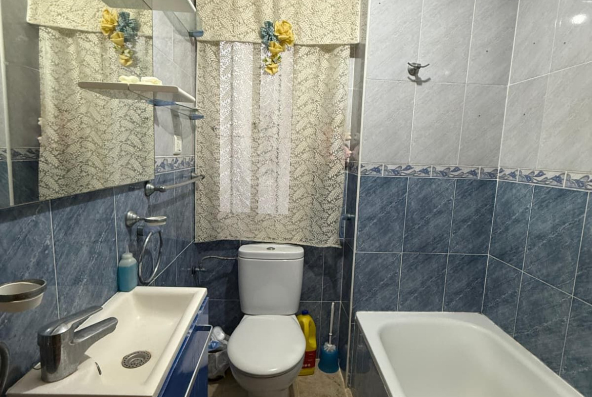 The property comprises a bright living-dining room. It has two bedrooms, both with fitted wardrobes, offering comfort and optimal storage space. The kitchen is separate, with a window that provides natural light and ventilation, and the full bathroom is equipped with a bathtub.