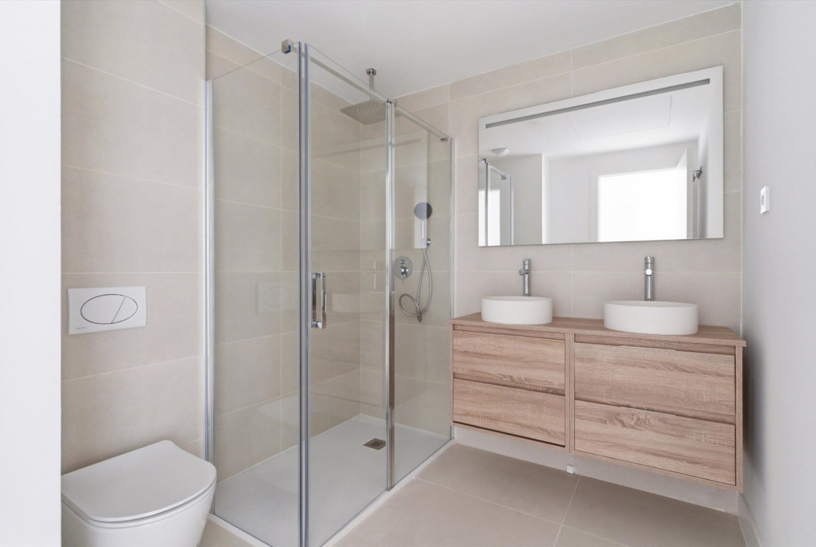 This elegant second-floor apartment offers two double bedrooms, two full bathrooms and a bright open-plan living space with sea views. Two underground parking spaces and a storage room add further comfort and convenience.