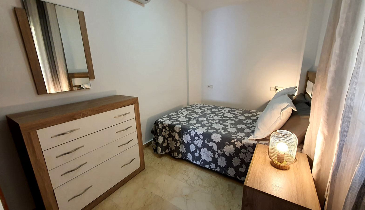 Third line beach cozy apartment in a quite and private street in the centre of Fuengirola. It is a very tranquil street as only residents can go in as you have to register your plate number in the townhall. The property has a modern open plan layout and offers good qualities like double glazed windows, marble floors and A/C. You are right in th heart of the city, 150 meters far from the beach. unbeatable location!