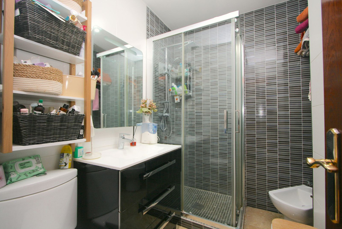 The ground-floor apartment offers a comfortable and functional layout with two bedrooms and two bathrooms, ideal for a family or a couple seeking convenience and proximity to everything. The kitchen has been completely renovated and is connected to the living room.