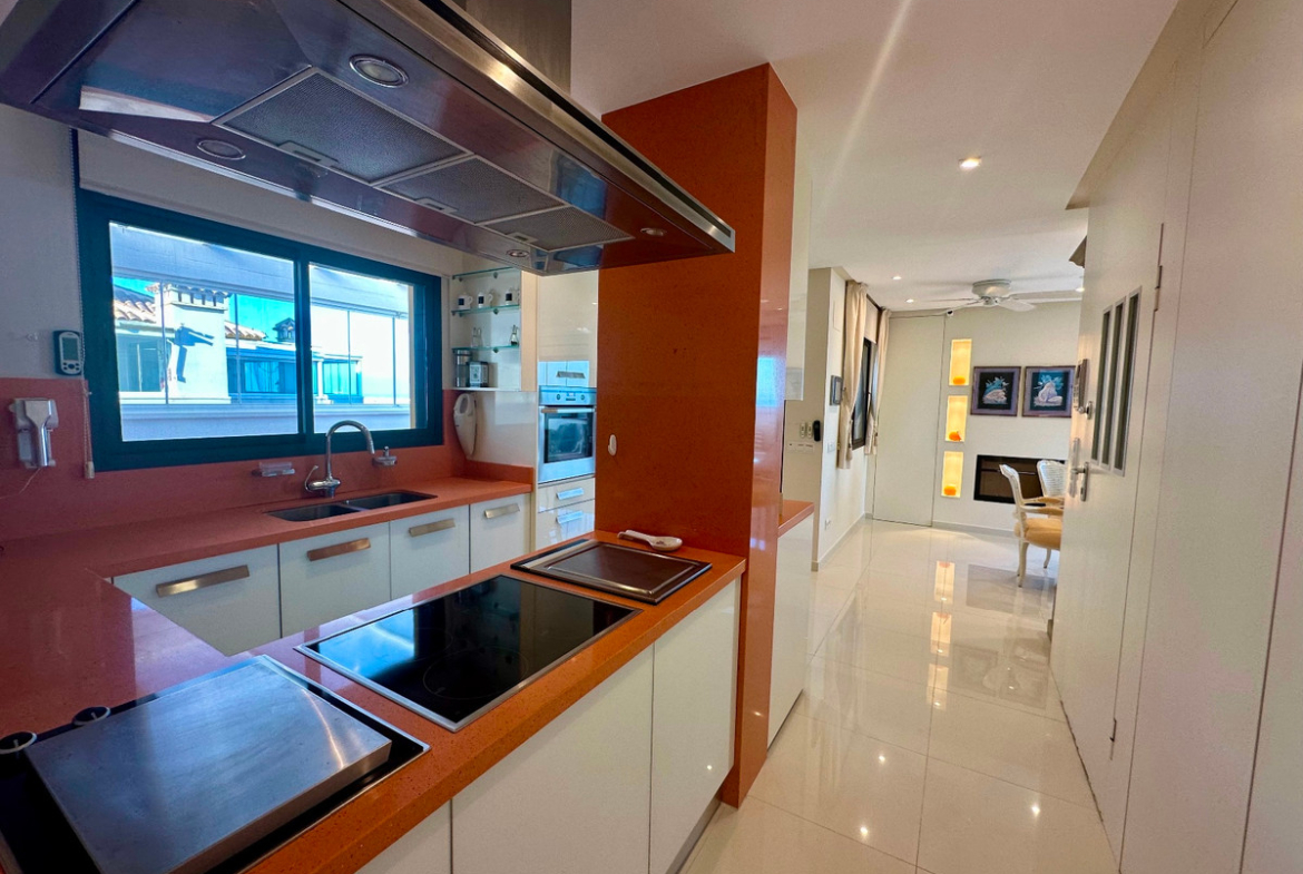 The fully equipped kitchen is a real eye-catcher for cooking enthusiasts. With extra features such as a built-in fryer and griddle, this kitchen is not only practical but also a place where cooking becomes a true pleasure. Thanks to the spacious layout, high-quality finish, and impressive views, this penthouse is ideal as a permanent residence, luxury holiday home, or interesting investment on the Costa Blanca.