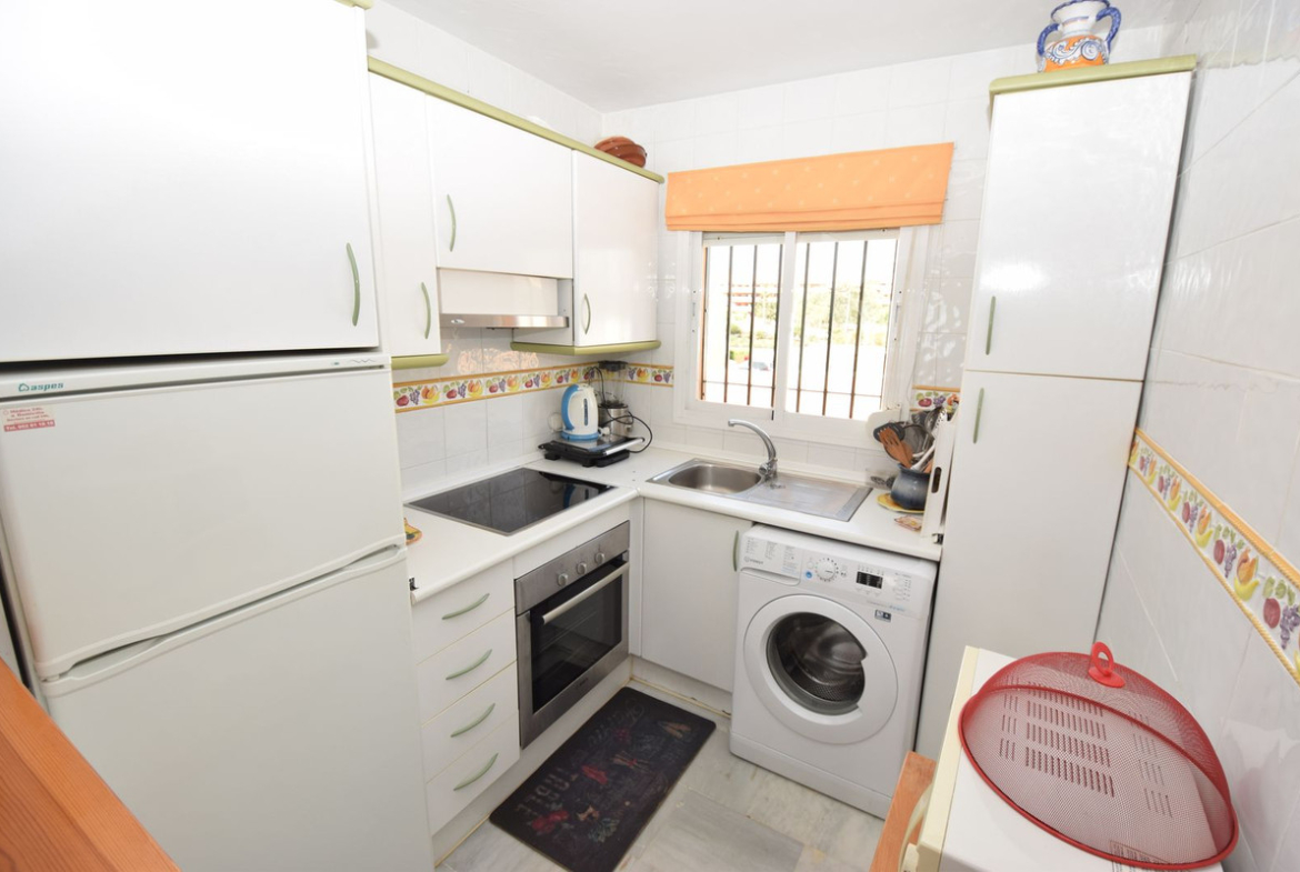 SECOND LINE BEACH. This is a lovely 2 bedroom penthouse apartment with fantastic pool, garden and sea views from the enclosed terrace and solarium. Situated in a great location very close to the beach and it is only a short, flat walk into La Cala centre and many restaurants, beach bars and shops. A good sized living room with dining area adjacent to the open kitchen, it is ideal for a holiday home or rentals. La Siesta is a well maintained, gated, secure complex with underground parking and lifts.