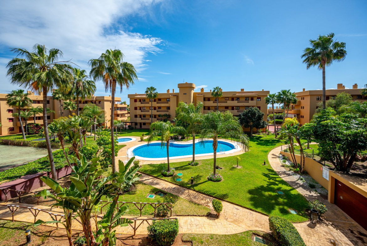 The development occupies a prime position on the Costa del Sol, surrounded by shopping centers, in La Cala de Mijas. The apartment is on the second floor and has a spacious south facing terrace, overlooking the gardens and swimming pool. It consists of 2 bedrooms and 2 bathrooms, fully fitted kitchen, air con both hot & cold, and underground parking space included. The complex offers 2 communal swimming pools as well as over 5000 m2 of subtropical Mediterranean gardens. Constructed with materials of the finest qualities and with great care taken to the smallest details both in the construction and the design, this complex has been conceived as the ideal location for beach and golf lovers.