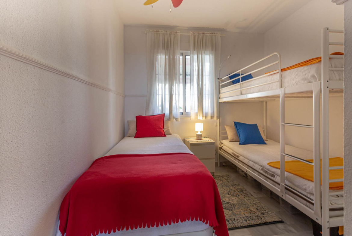 Ángel de Miraflores is a well-maintained residential complex located in the heart of the popular Miraflores area of Mijas Costa. Known for its peaceful atmosphere and beautifully landscaped surroundings, the complex is ideal for both permanent living and holiday stays. The community offers lush communal gardens, 2 large swimming pools (one of which is open all year round), a chilldren's pool and plenty of sunbathing areas, creating a relaxing Mediterranean environment. For added safety, one of the communal pools has a lifeguard present throughout the summer season. Many residents appreciate the quiet and friendly feel of the complex, with a good mix of full-time residents and holiday homeowners. The community is well-run and has a very low monthly community fee of just 56 €.