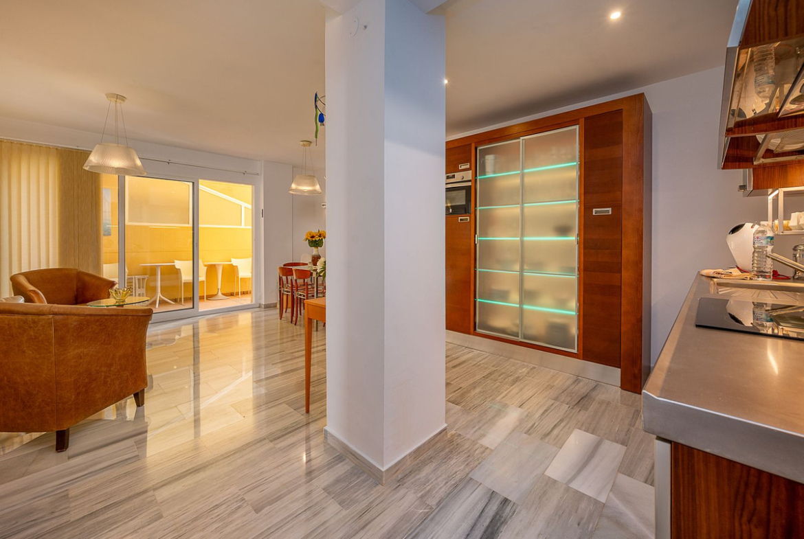 A rare opportunity to purchase a beautiful apartment in this sought after & very prestigious community of Arruzafa Playa I. This delightful modern, front-line, first floor apartment consists of 2 bedrooms and 2 bathrooms, the building has a lift, it also benefits from an underground garage space and store-room. Air-con and heating are also installed. It boasts views over the community, swimming pool and sea. Must be seen!!!!!!! .