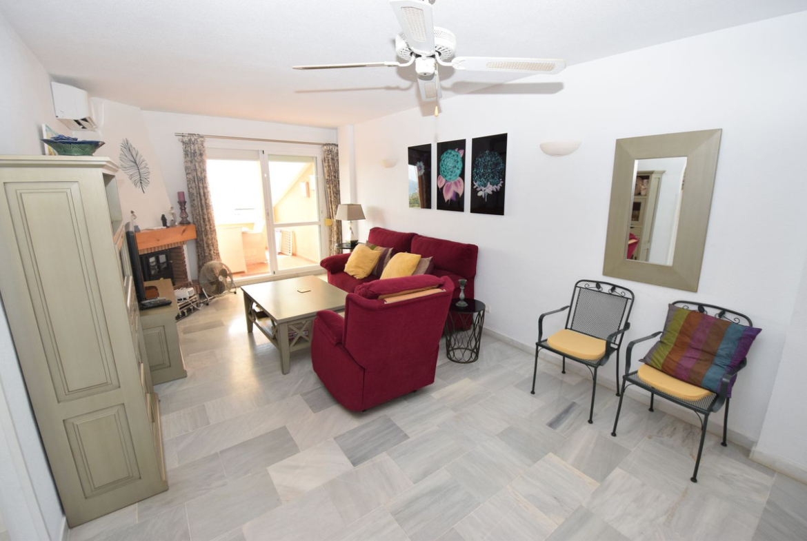SECOND LINE BEACH. This is a lovely 2 bedroom penthouse apartment with fantastic pool, garden and sea views from the enclosed terrace and solarium. Situated in a great location very close to the beach and it is only a short, flat walk into La Cala centre and many restaurants, beach bars and shops. A good sized living room with dining area adjacent to the open kitchen, it is ideal for a holiday home or rentals. La Siesta is a well maintained, gated, secure complex with underground parking and lifts.