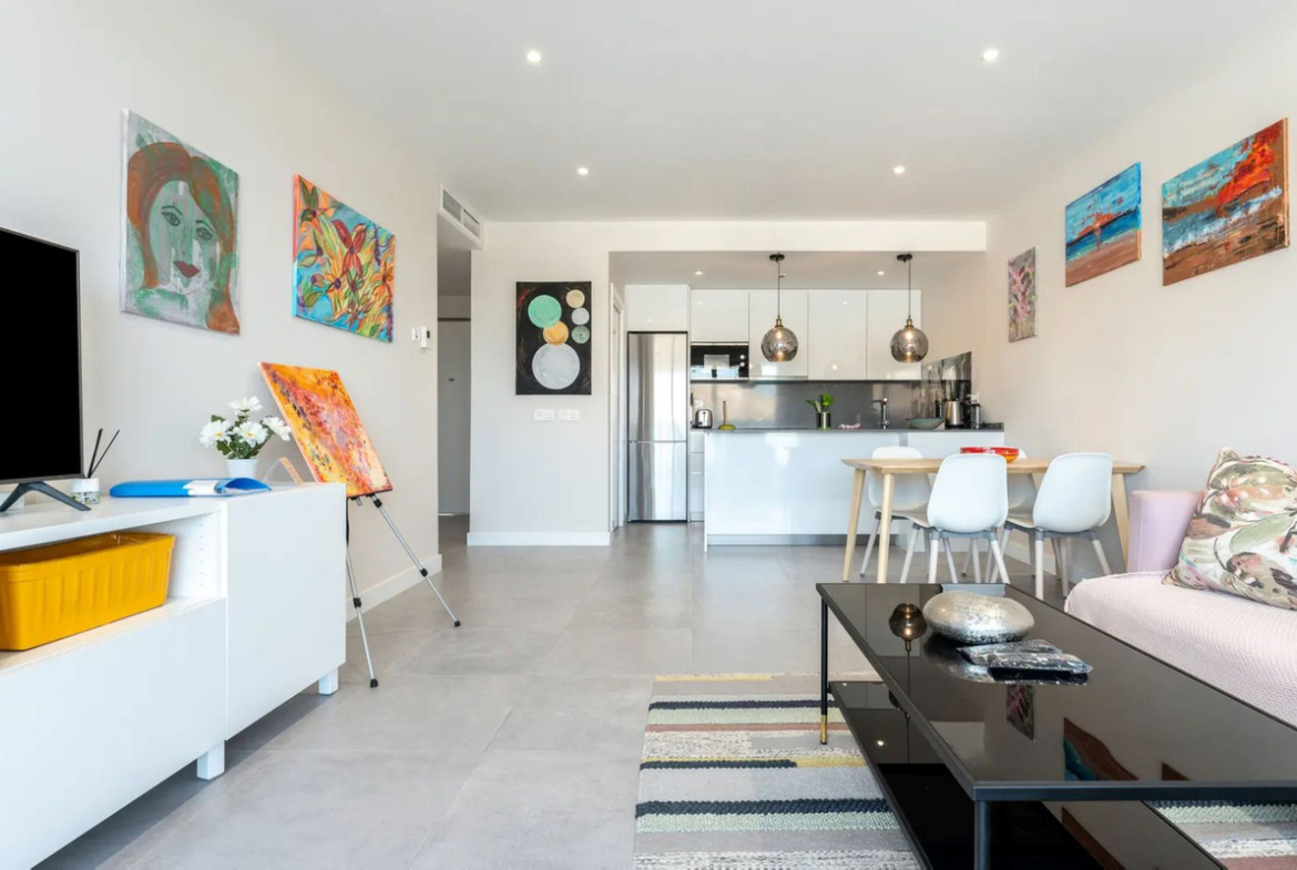Brand new modern spacious apartment within easy walking distance to La Cala, with a large supermarket across the street.. This apartment is located on the 2nd floor overlooking the swimming pool, the terrace faces southwest and benefits from sea views and mountain views.