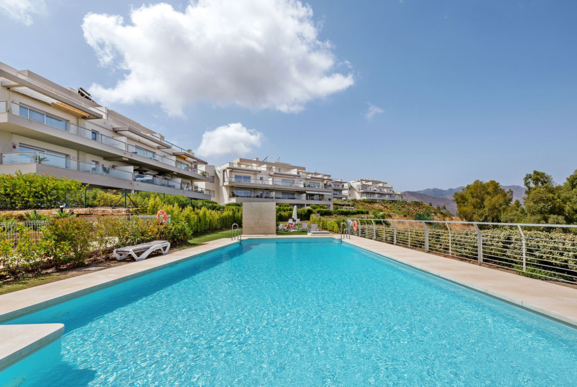 Discover this exceptionally bright middle-floor apartment featuring 2 bedrooms and 2 bathrooms, complete with an expansive terrace and panoramic views. Ideally situated within walking distance of the La Cala Golf Clubhouse and its facilities, this property offers both convenience and luxury.