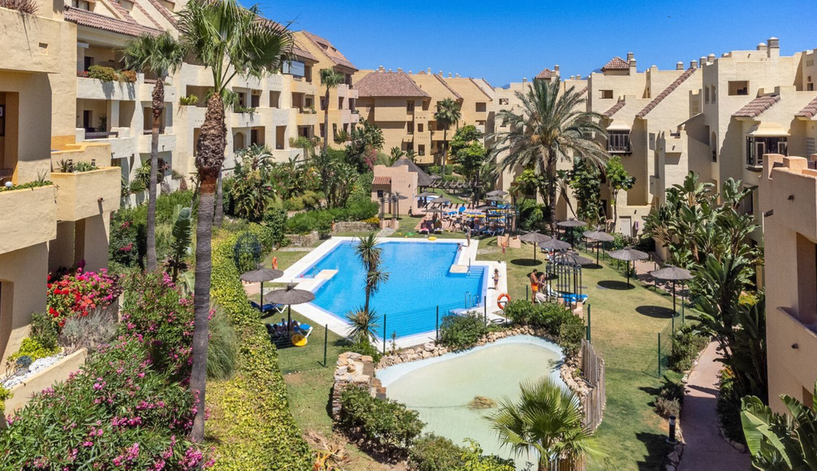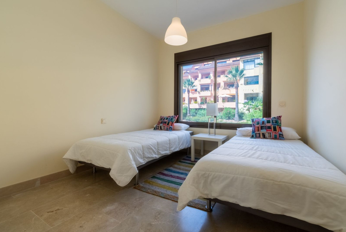 Beautiful two bedroom, two bathroom apartment located a short walk from the beach and picturesque Marina at La Duquesa. This extremely spacious apartment briefly comprises: large open plan lounge and dining area, access to an expensive terrace offering beautiful sea views, two good sized bedrooms with the master having access to the terrace, two full bathrooms, one being en-suite to the master bedroom, and a further family bathroom. The property is offered in almost as new condition, and included in the sale is a private underground car parking space and storage room. The community has 24-hour security, immaculate gardens, five beautiful swimming pools plus a paddle tennis court. The closest amenities are a 15-minute walk away (1.3km) and the beach and Marina are just 24 minutes walk away (2.1km). This completely unique apartment is a must-view property.