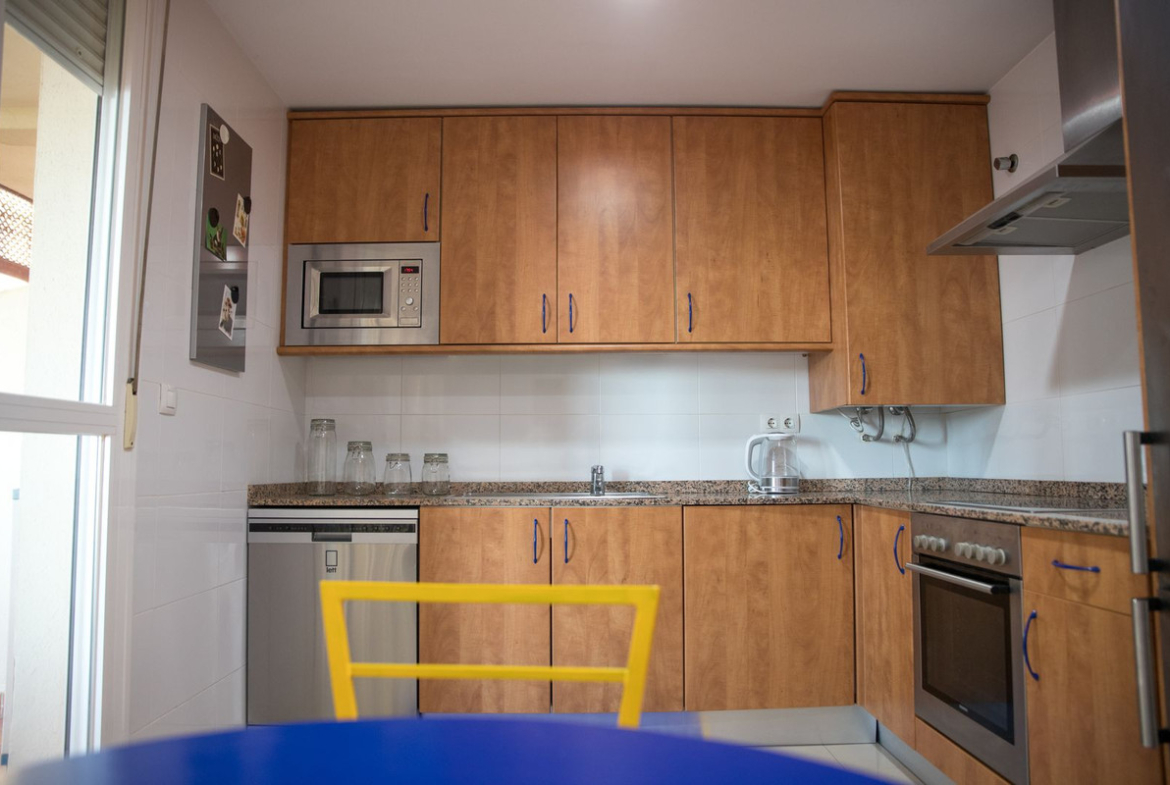 Large two bedroom apartment located on a first floor in el hacho duquesa. It is a very spacious property with a large independent fully fitted kitchen, you can dine in the kitchen and there is also a terrace with morning sun and sea views off the kitchen.