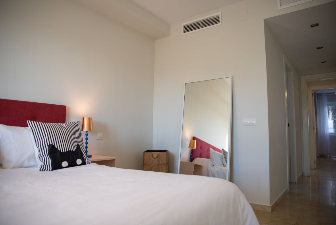 When walking into the property you walk into a proper hallway and then into the living room, a very spacious living room with a west facing terrace, overlooking golf and mountains.