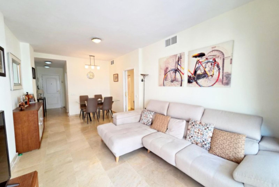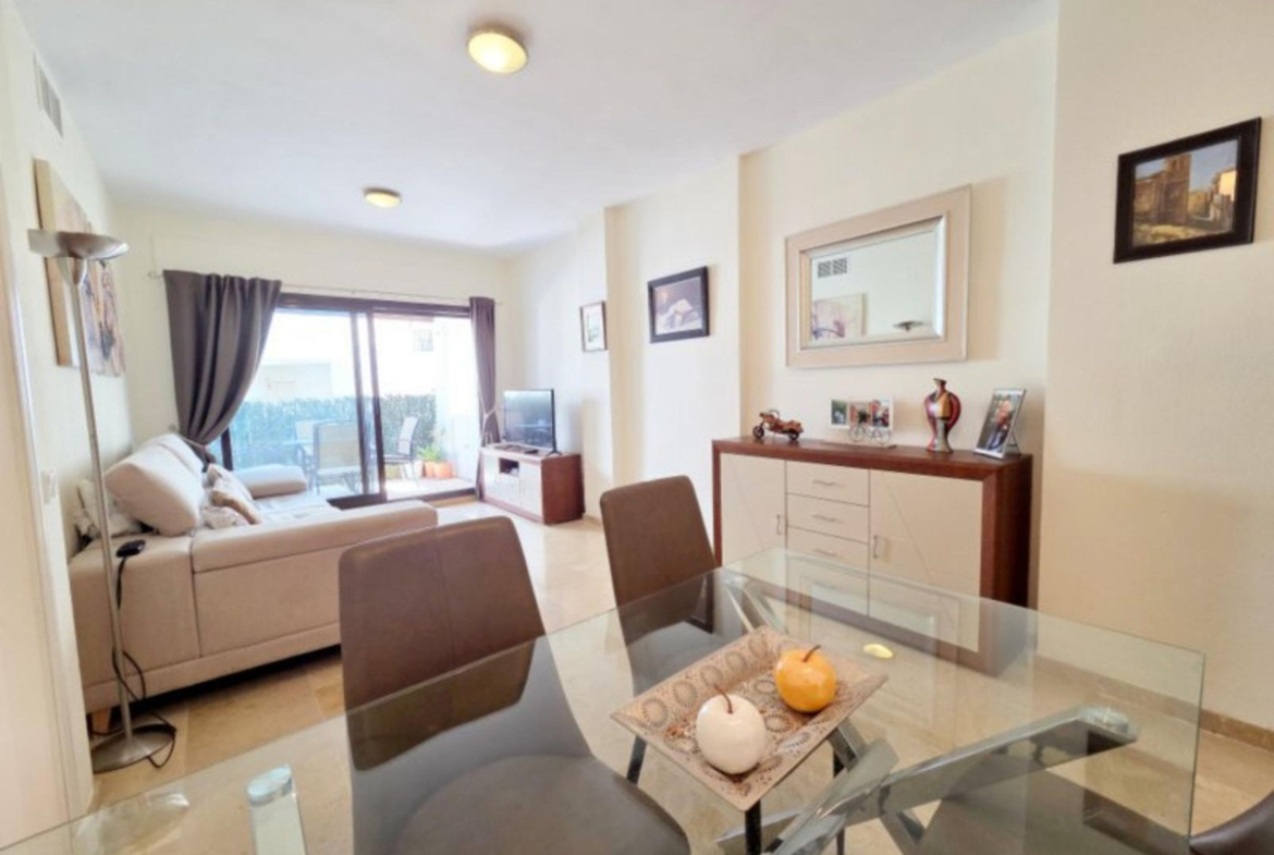 This charming 2-bedroom, 2-bathroom apartment located in the highly sought-after Fuentes de la Duquesa urbanisation, renowned for its beautifully maintained pools, lush communal areas, and welcoming community atmosphere. Ideally located within close proximity to Duquesa Marina, Shops and Beaches. The property is tastefully decorated in a neutral palette, creating a bright and inviting space throughout. It features an open-plan living area with patio doors leading onto a private terrace, where you can enjoy views over the gardens and towards the coastline. The spacious galley-style kitchen is fully equipped with quality worktops, white goods, and a generous utility area at the end, offering both practicality and convenience. Both bedrooms are light-filled and offer ample storage. The master bedroom benefits from a large en-suite bathroom, while the second bathroom is conveniently located next to the guest bedroom. This apartment is set in a tranquil location, making it ideal as a permanent residence, holiday home, or investment. Viewing is highly recommended to fully appreciate everything this lovely property and community have to offer.