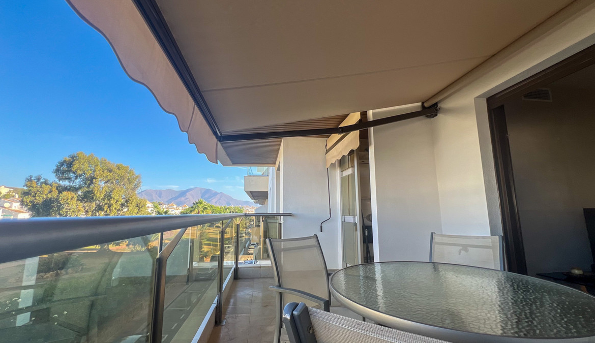 This modern apartment is sold fully furnished and designed for comfortable living. The property features a spacious living and dining area that opens onto a terrace with views of the park and the stunning Sierra Bermeja mountains. A fully fitted kitchen with a dedicated laundry area. Both bedrooms offer en-suite bathrooms and private balconies.