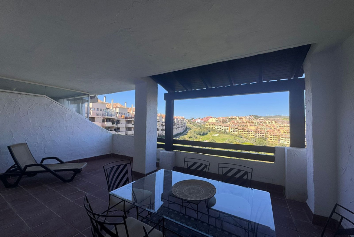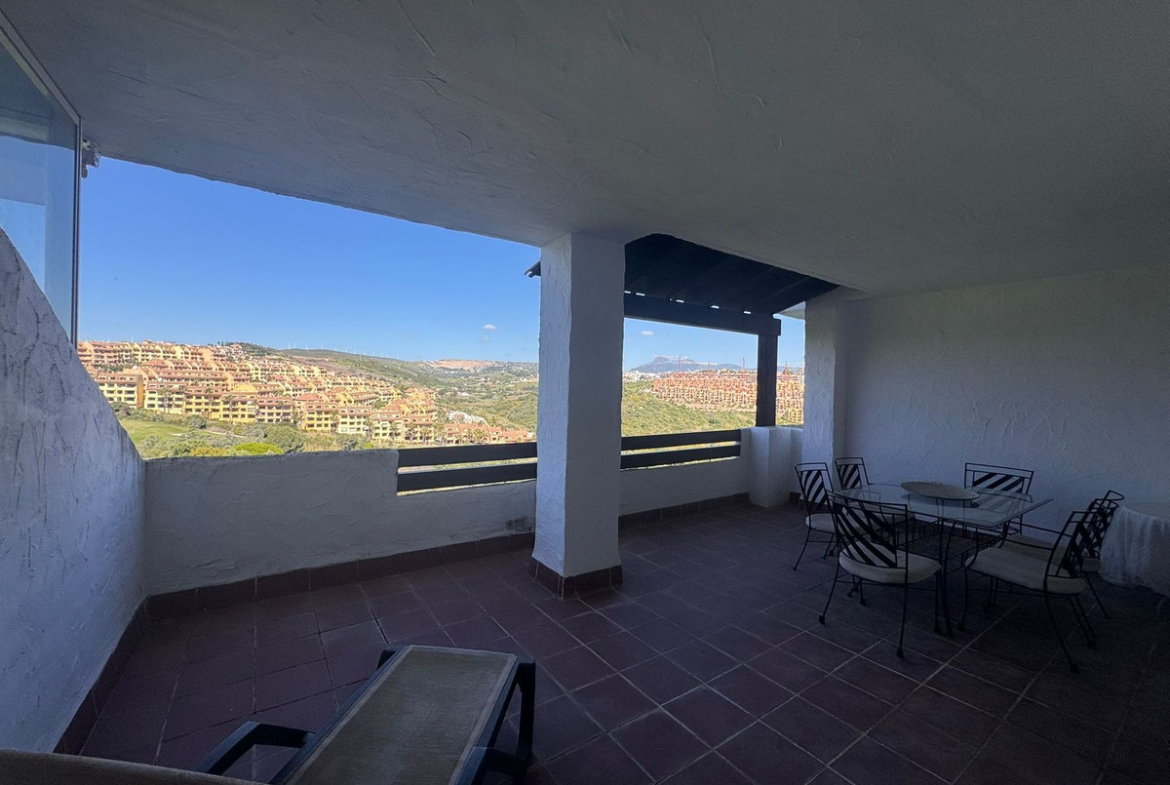 Large and bright lounge with access to a great terrace of +-30m2 west facing to ensure sun all the afternoon and views to La Duquesa golf course. Fully equipped independent kitchen with access to another terrace of +-25m2 with morning sun. The master bedroom has also access to the big and sunny terrace, fitted wardrobes and ensuite bathroom. The second bedroom has access to the morning sun terrace.