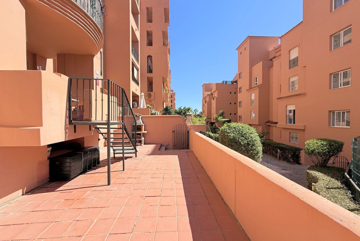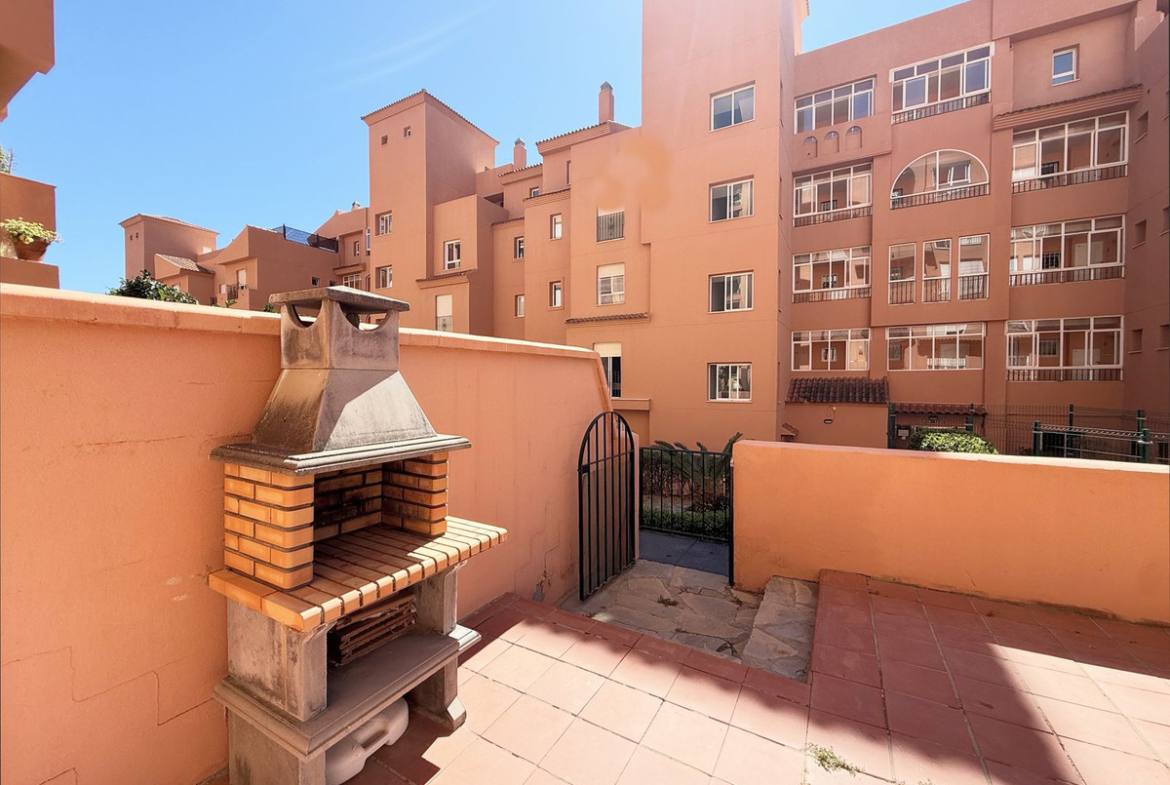Beautiful Apartment with Spacious Terrace and Private Patio in La Duquesa With a privileged location just 400 meters from the beach and surrounded by everything you need for day-to-day living. Supermarkets, restaurants, a gym, and services are just steps away, while in only 3 minutes by car you can enjoy the charming marina of La Duquesa and in 5 minutes the prestigious Sotogrande port, both perfect for strolling by the sea and experiencing the unique atmosphere of the Costa del Sol. A location that combines peace and quiet with the convenience of having everything close at hand. This bright and welcoming ground-floor property offers a large terrace alongside a generous private patio with a barbecue area—perfect for enjoying pleasant evenings outdoors all year round, thanks to the area’s exceptional microclimate. Facing south, it receives abundant natural light, creating a warm and comfortable atmosphere. It features two bedrooms and two bathrooms, stylishly presented and in excellent condition, ready to move into or enjoy as a holiday home. The charming residential complex, full of potential, is a small oasis of relaxation with a spectacular communal pool, beautifully maintained gardens, and a children’s play area. In addition, the property has a valid tourist license and an excellent rating on vacation rental platforms, making it an attractive option both for those seeking a second home and for those wishing to continue with a profitable investment. Don’t miss the opportunity to visit and discover for yourself all the advantages that make this a unique choice on the Costa del Sol.